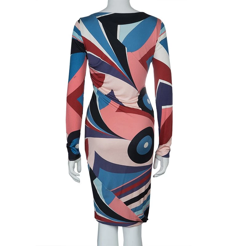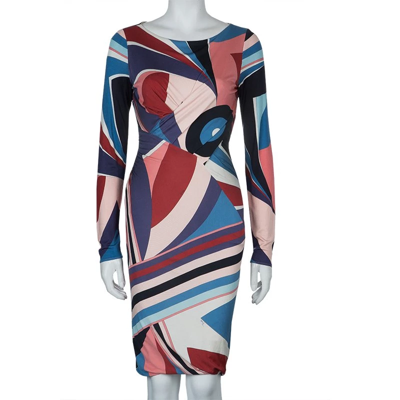 Swanky and chic, this Dress by Emilio Pucci will assist you with a winsome look. Crafted from a silk, elastane and nylon blend, it features a round neck and long sleeves. This dress is accentuated with a classic multicolor print.