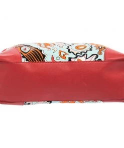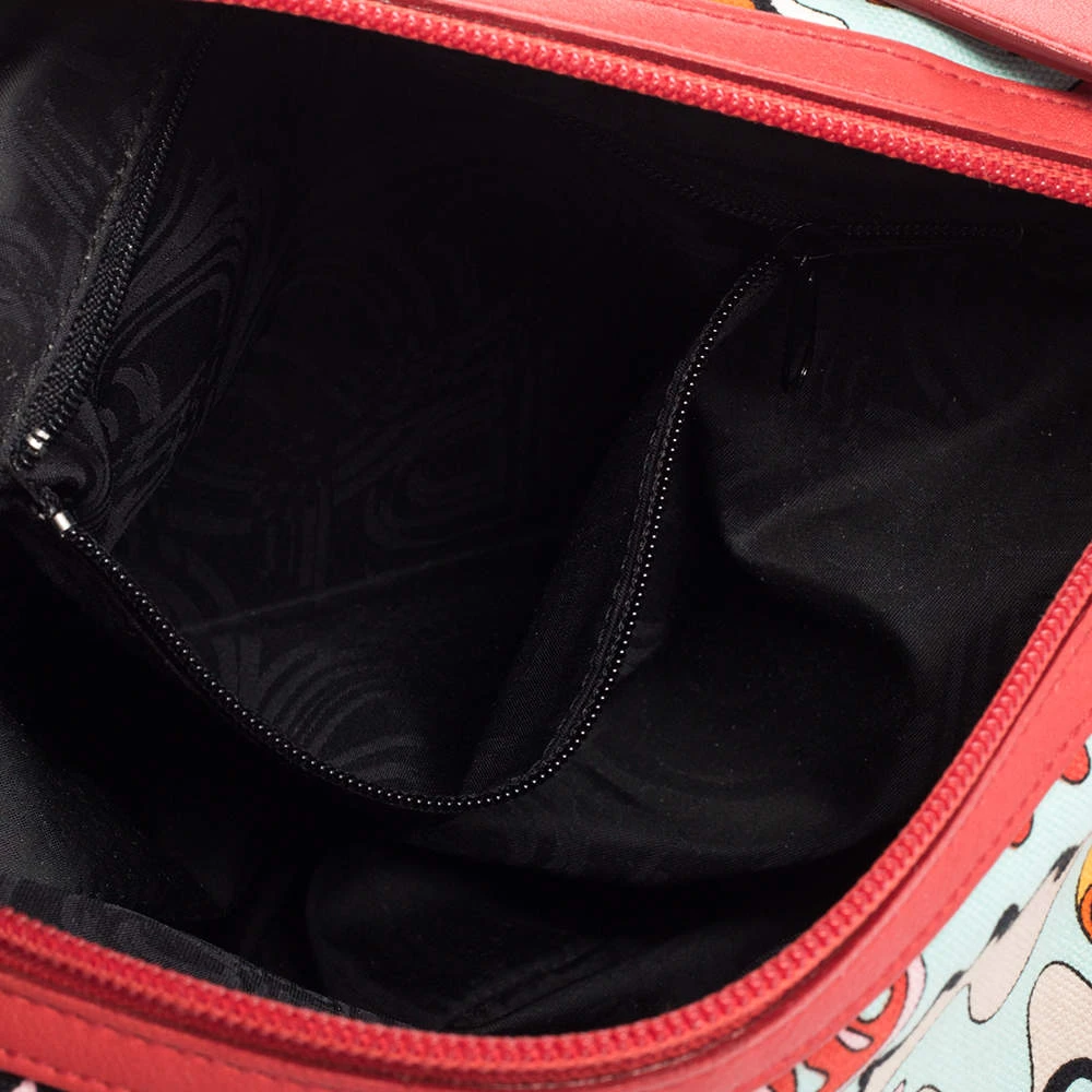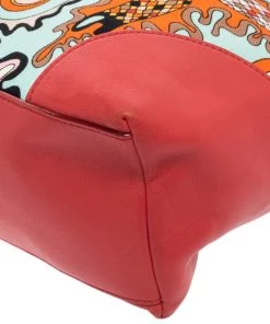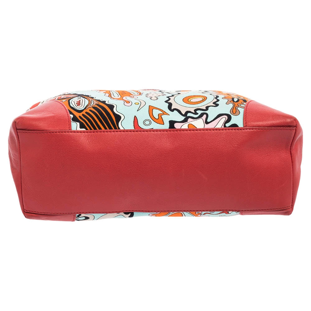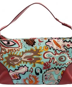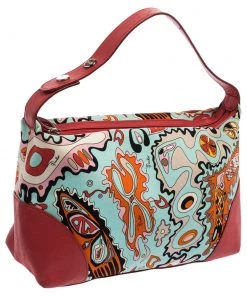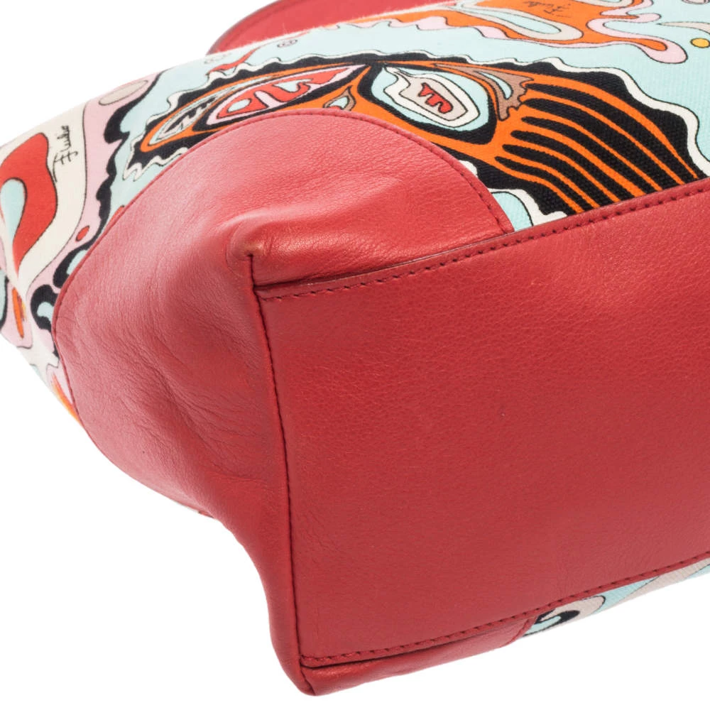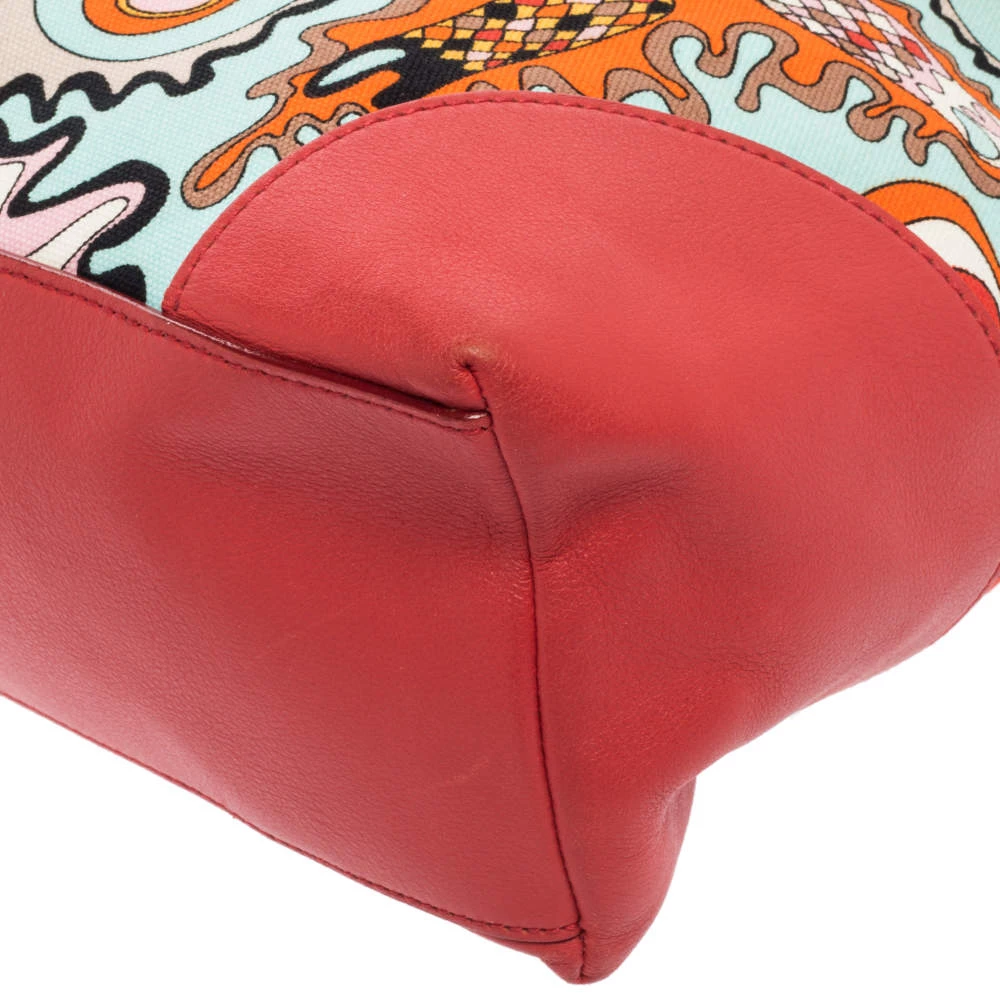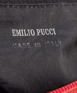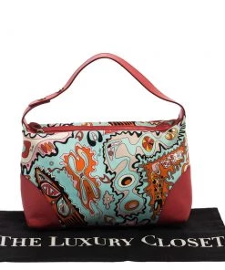 Make a striking appearance with this Baguette bag by Emilio Pucci. This elegant creation is at once a fashion statement as well as a rational necessity. It is crafted from multicolored printed canvas and leather. This bag is completed with silver-tone hardware, a fabric-lined interior, and a single handle drop.