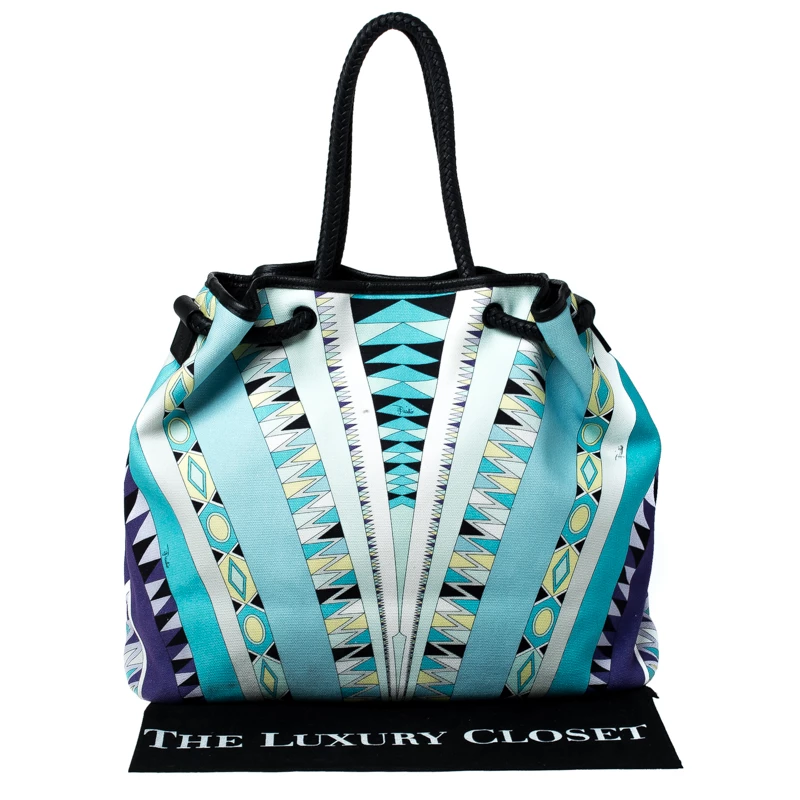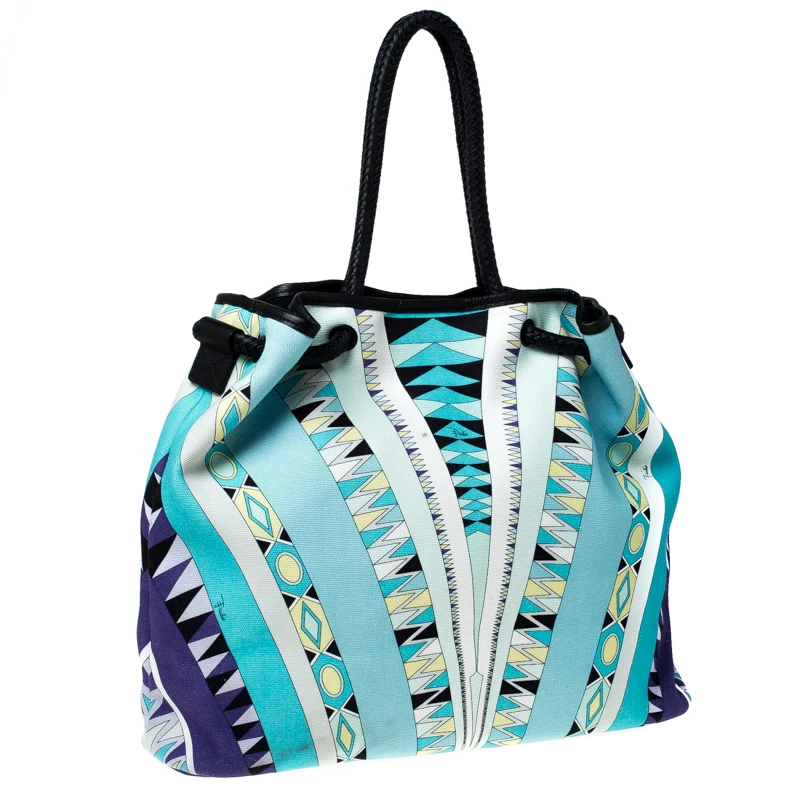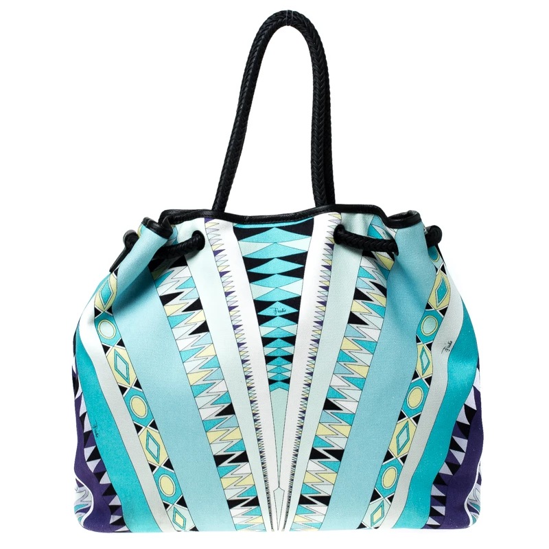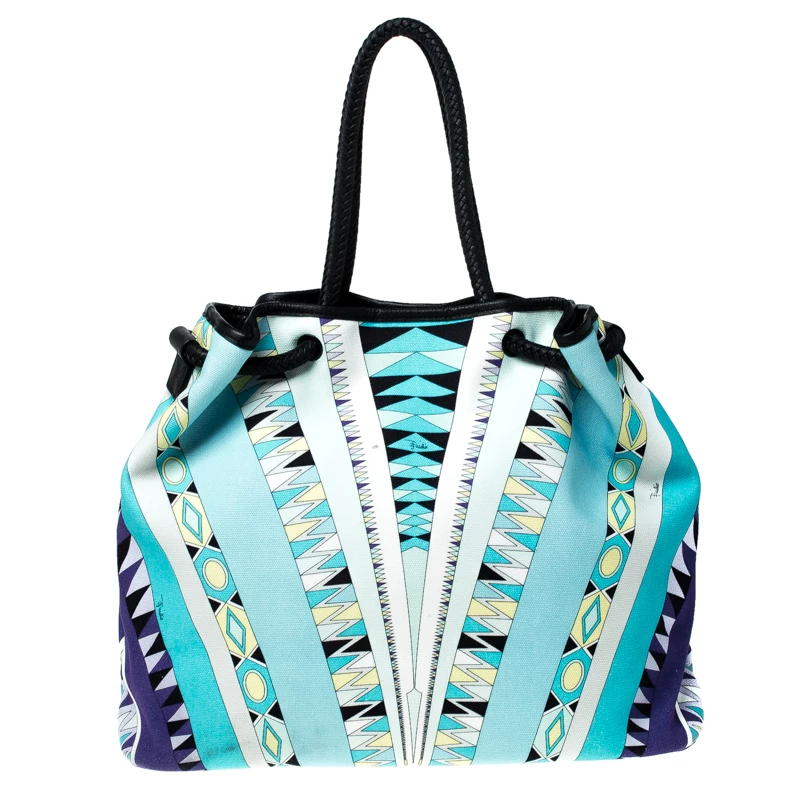 Striking in design and high on style, this Emilio Pucci tote definitely needs to be on your wishlist! The multicolor tote is crafted from canvas and leather trims and features a lovely print all over it. It flaunts a drawstring closure and dual handles and opens to a spacious canvas lined interior that can easily hold all your daily essentials.