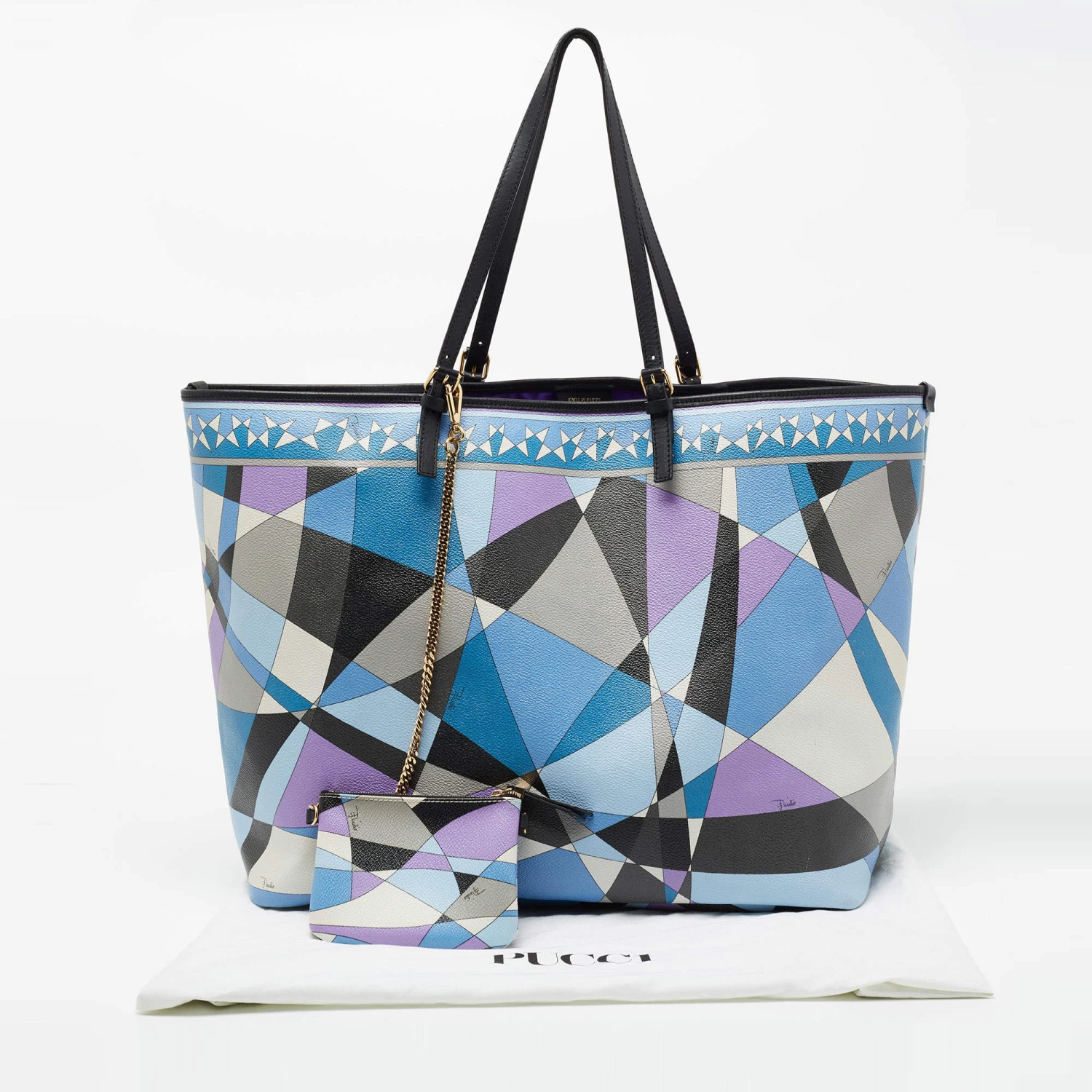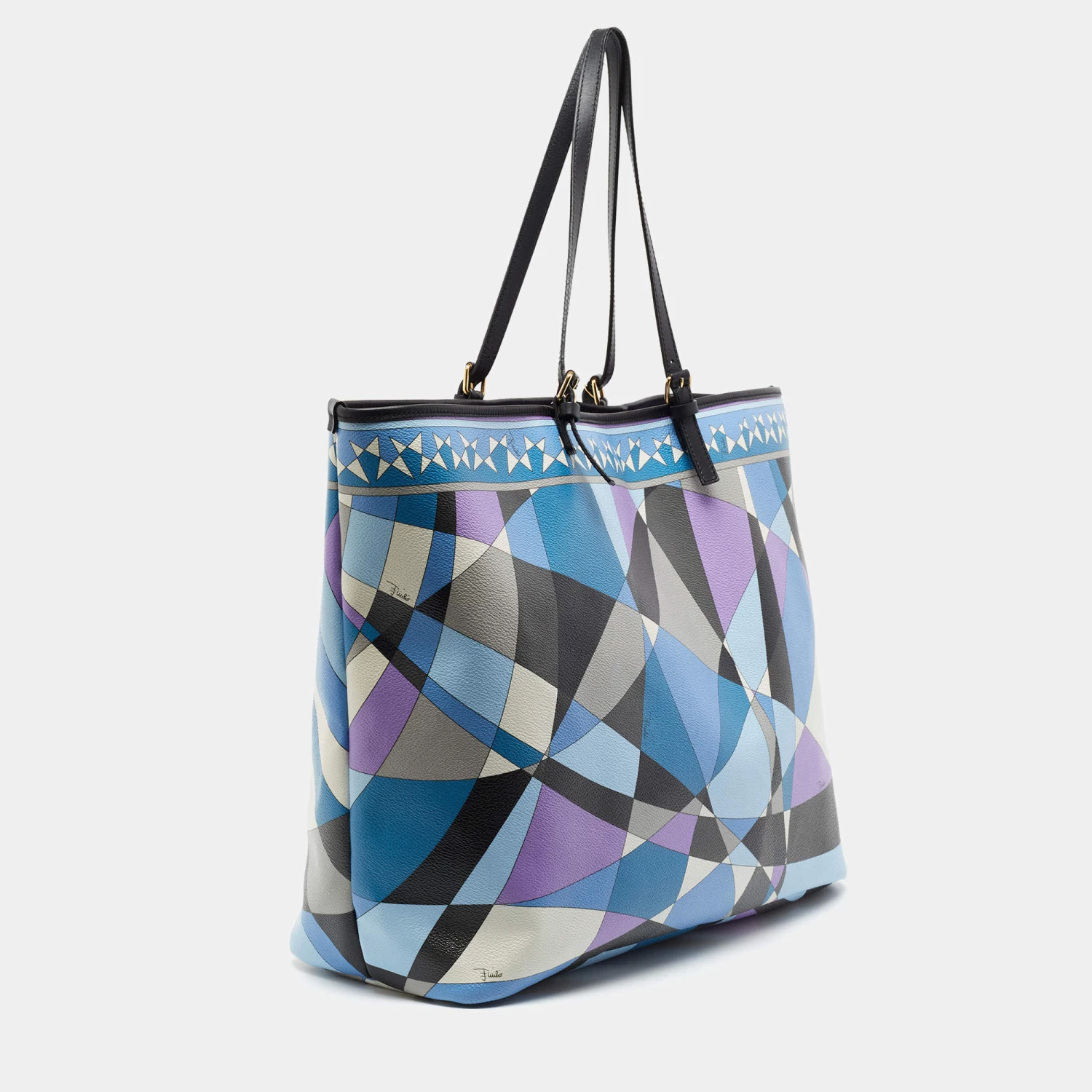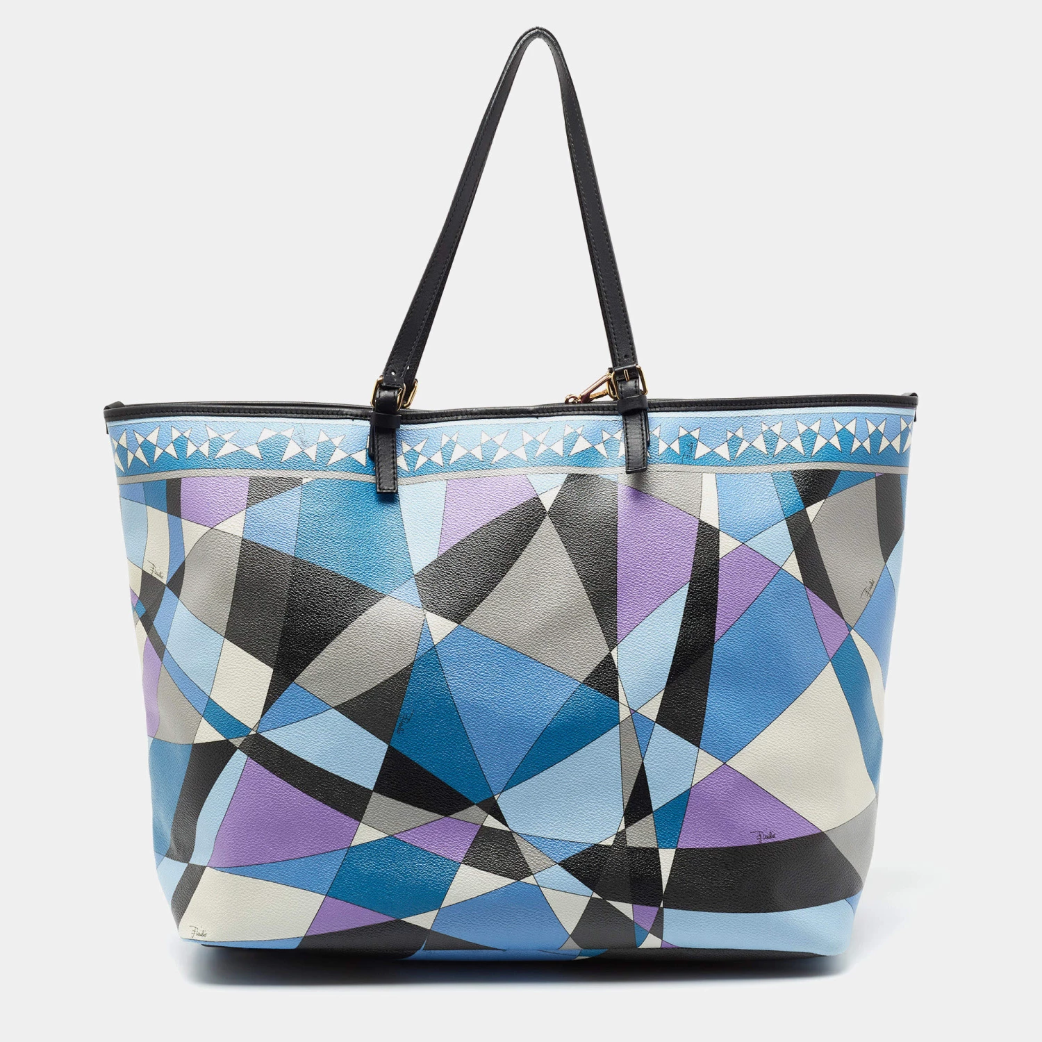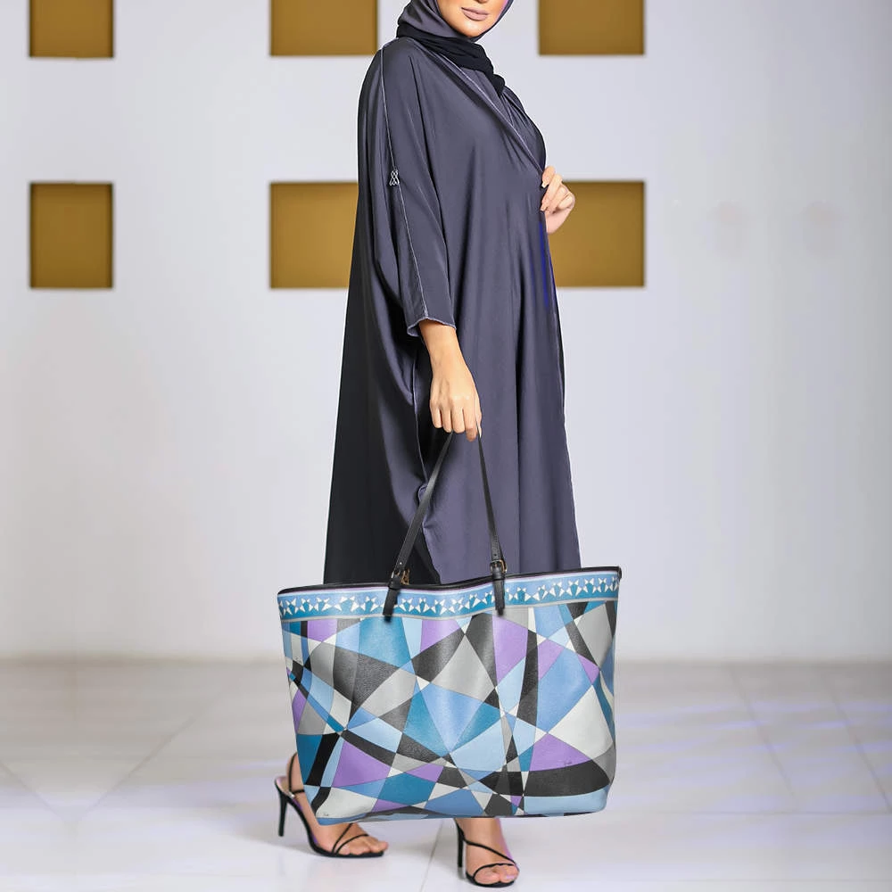 This beautifully stitched coated canvas and leather tote is by Emilio Pucci. With a capacious fabric-lined interior, it will house more than your essentials. Boasting two handles and a fine finish, this multicolored, printed tote offers style and utmost practicality.