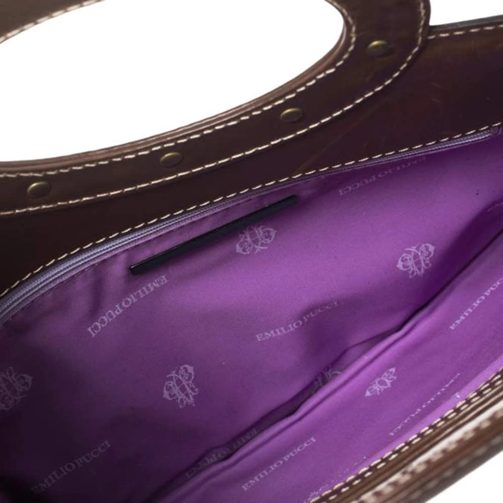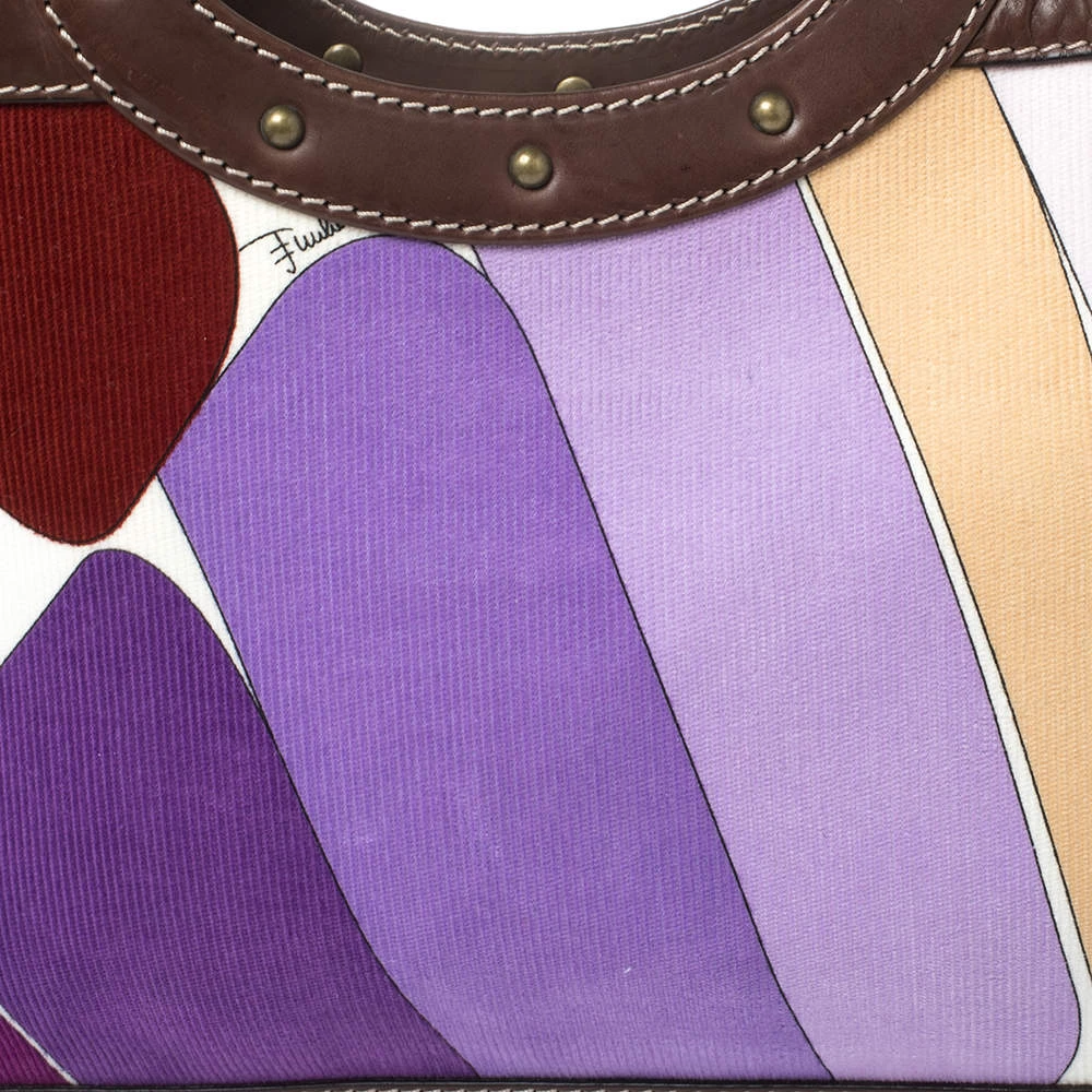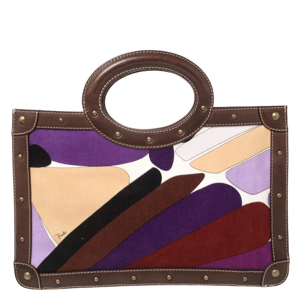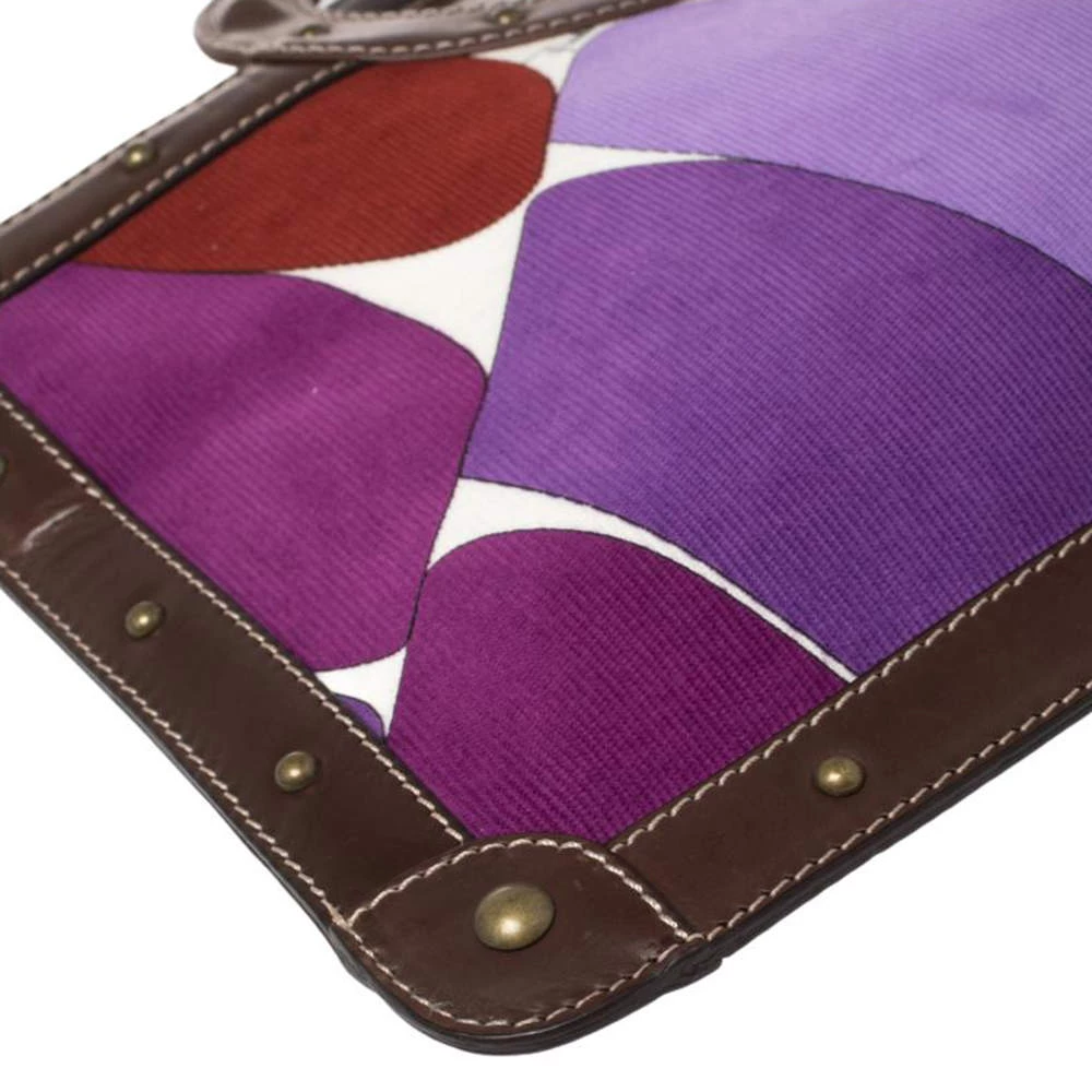This lovely tote bag hails from the house of Emilio Pucci. The bag has been crafted from multicolored corduroy & leather and has two ring handles. It has a spacious fabric-lined interior and bronze-tone hardware. Grab it and make heads turn every time you carry it.