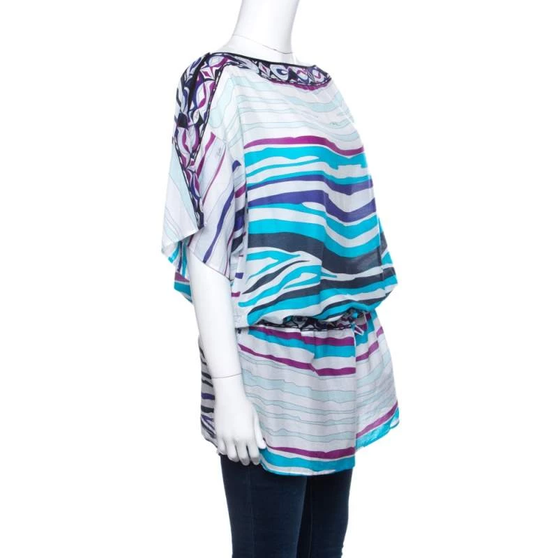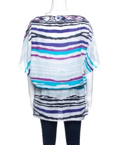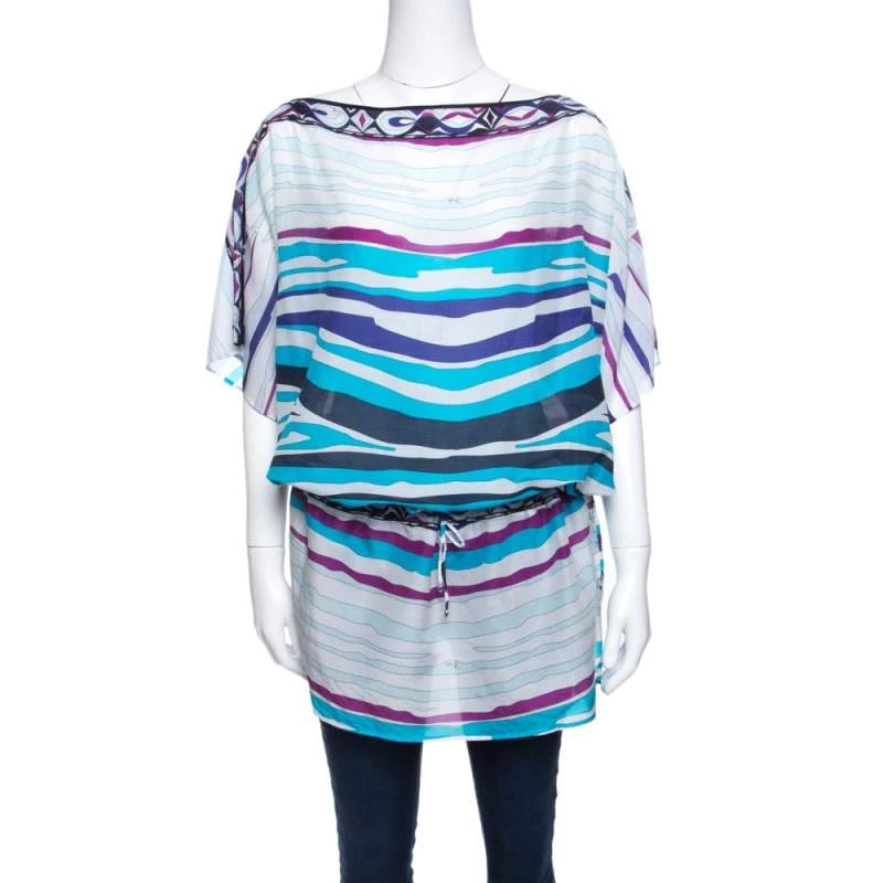 Emilio Pucci’ Voile tunic gives you an effortless style. Lovely and stylish, the outfit is cut from a cotton blend and features a multicoloured print overall. It has a drawstring detail on the waist that creates a relaxed shape. Completed with short sleeves, wear this with your fun casual separates.