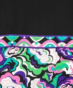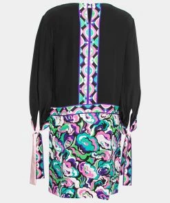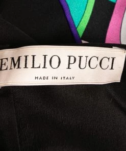 Bring Emilio Pucci’s charm and elegance to your closet with this gorgeous dress. This dress’s pretty prints and multicolored hues perfectly complement the black fabric. It has a midi-length silhouette, tie-detailed sleeves, and a zipper closure. This dress is the perfect accessory to look chic and elegant.