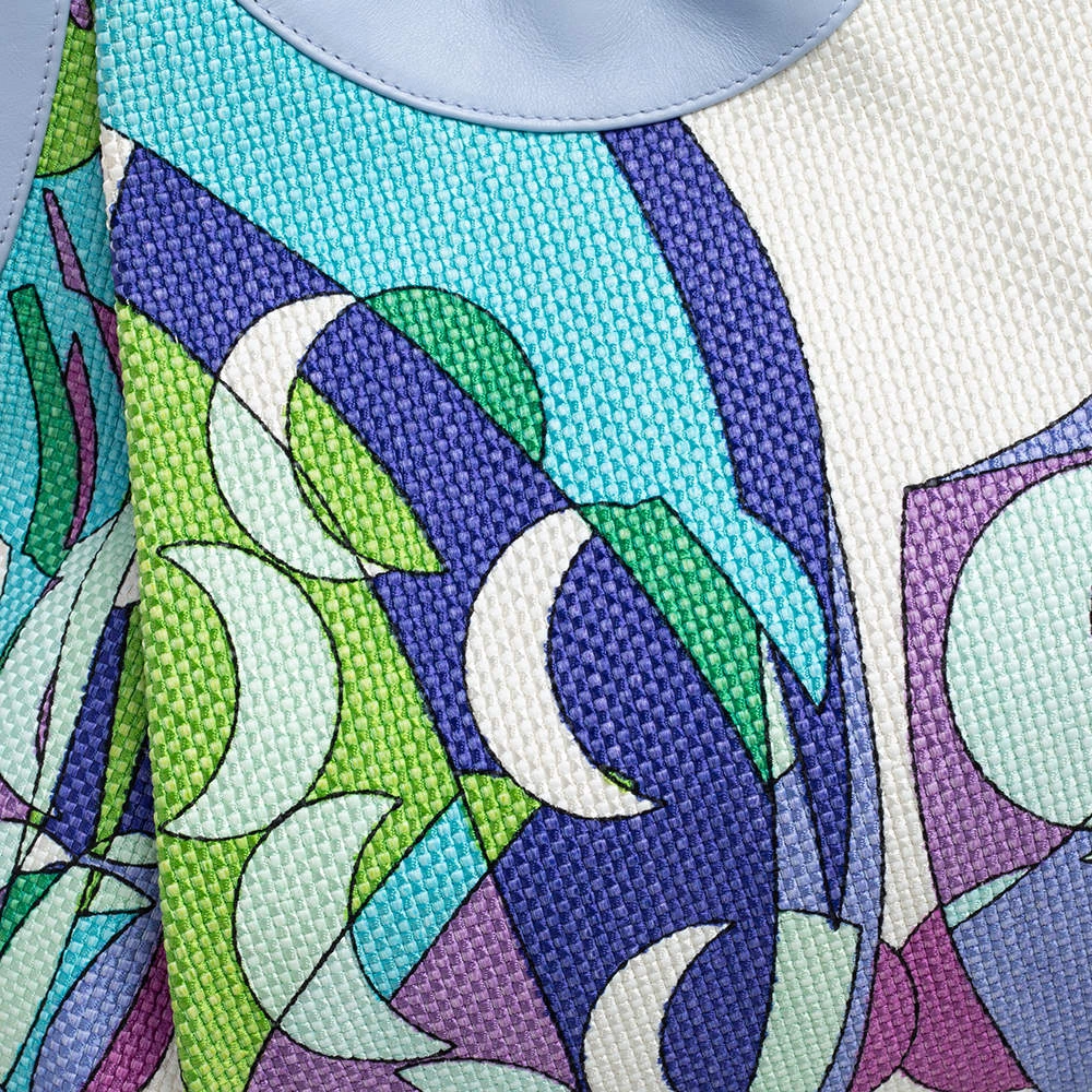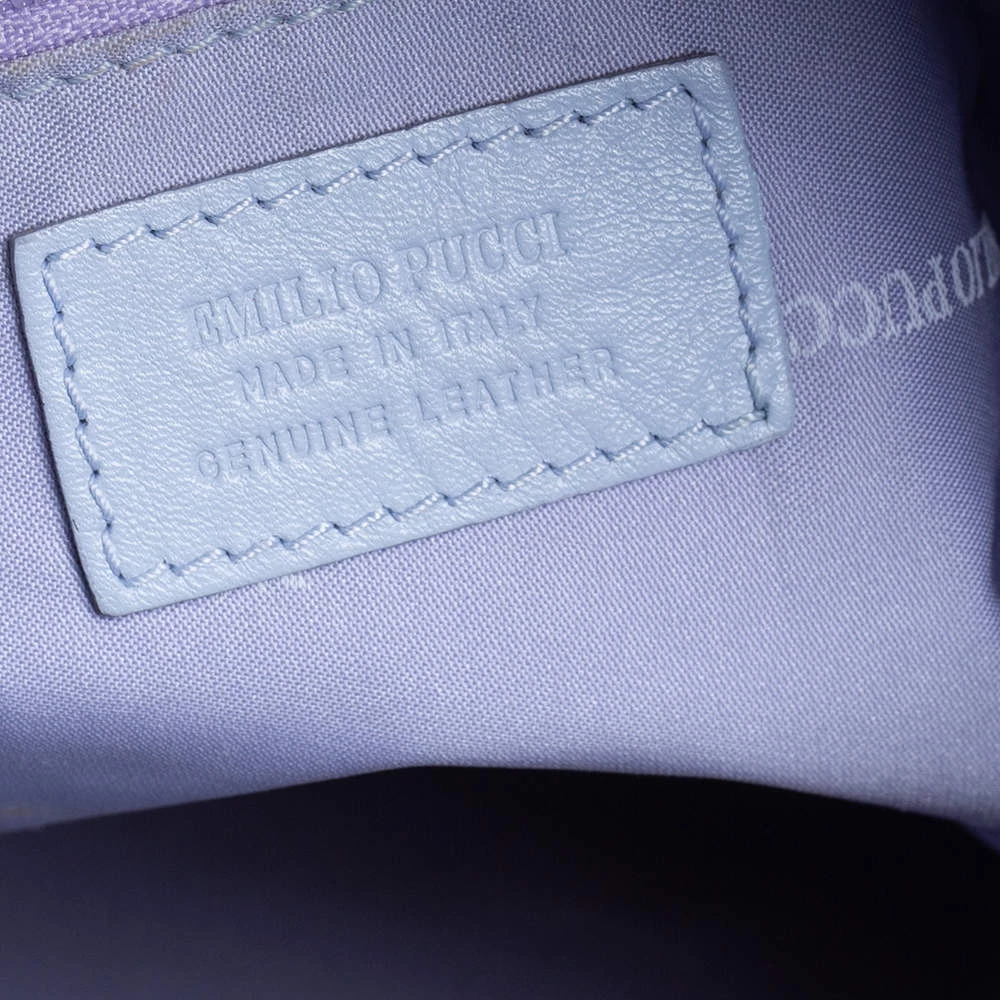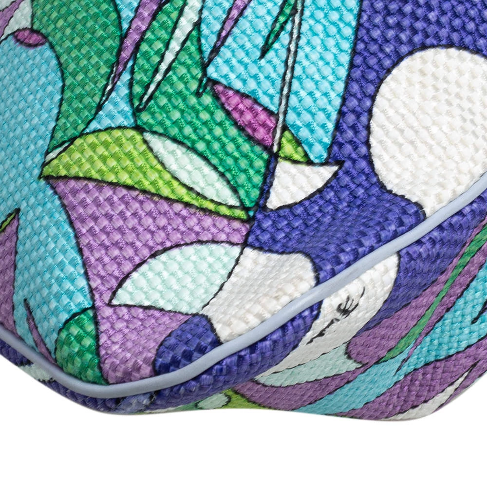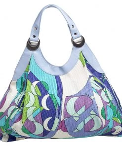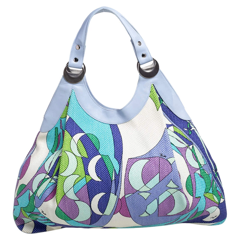 Luxury and elegance get personified with this brilliantly crafted hobo from Emilio Pucci. The bag is made from colorful fabric and leather and comes with twin top handles. The snap button closure opens to a fabric-lined interior that will hold all your necessities.