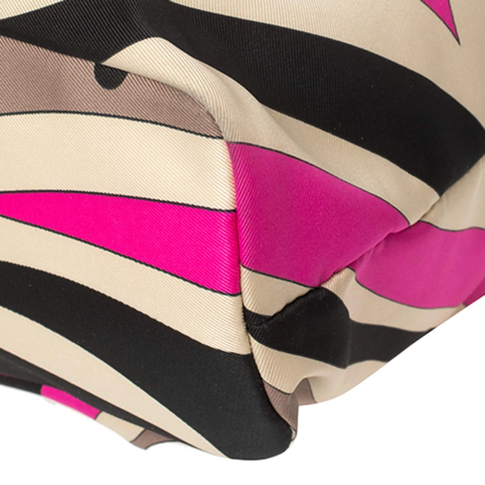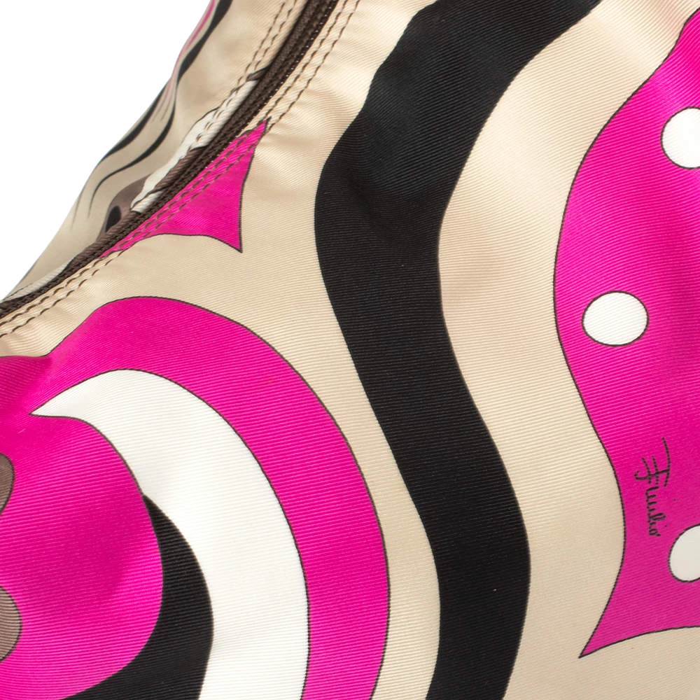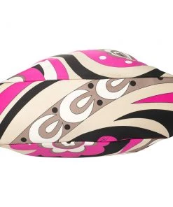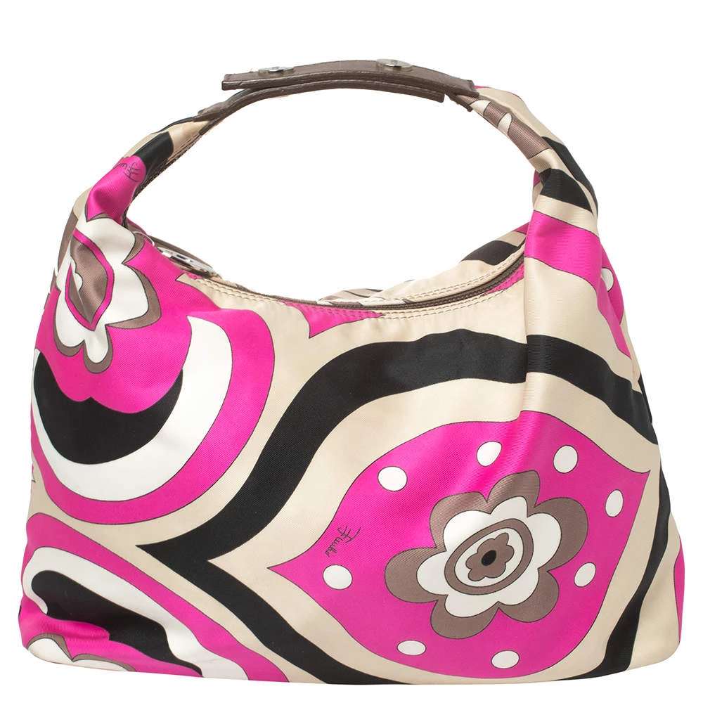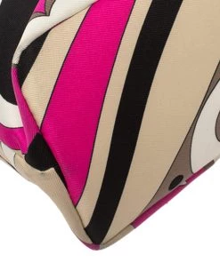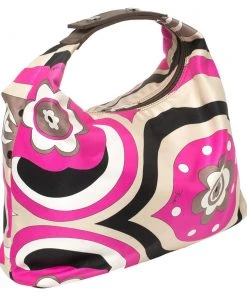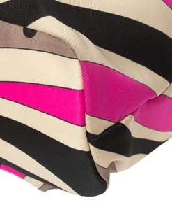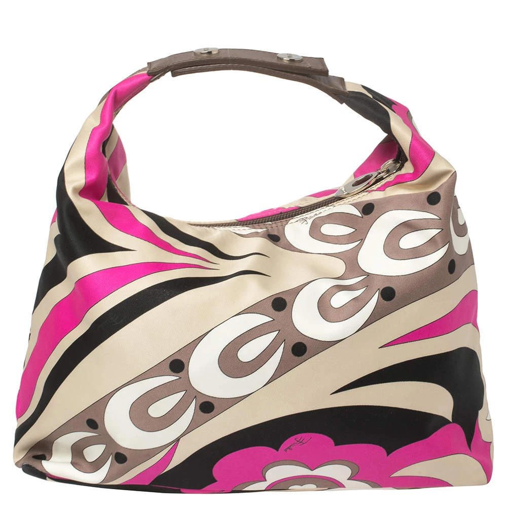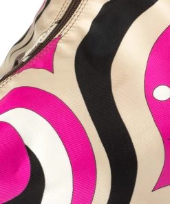 This designer clutch bag by Emilio Pucci carries a signature look of prints and vivid colors. Made from fabric, the clutch has a single handle and a lined interior to house your day’s essentials with ease.