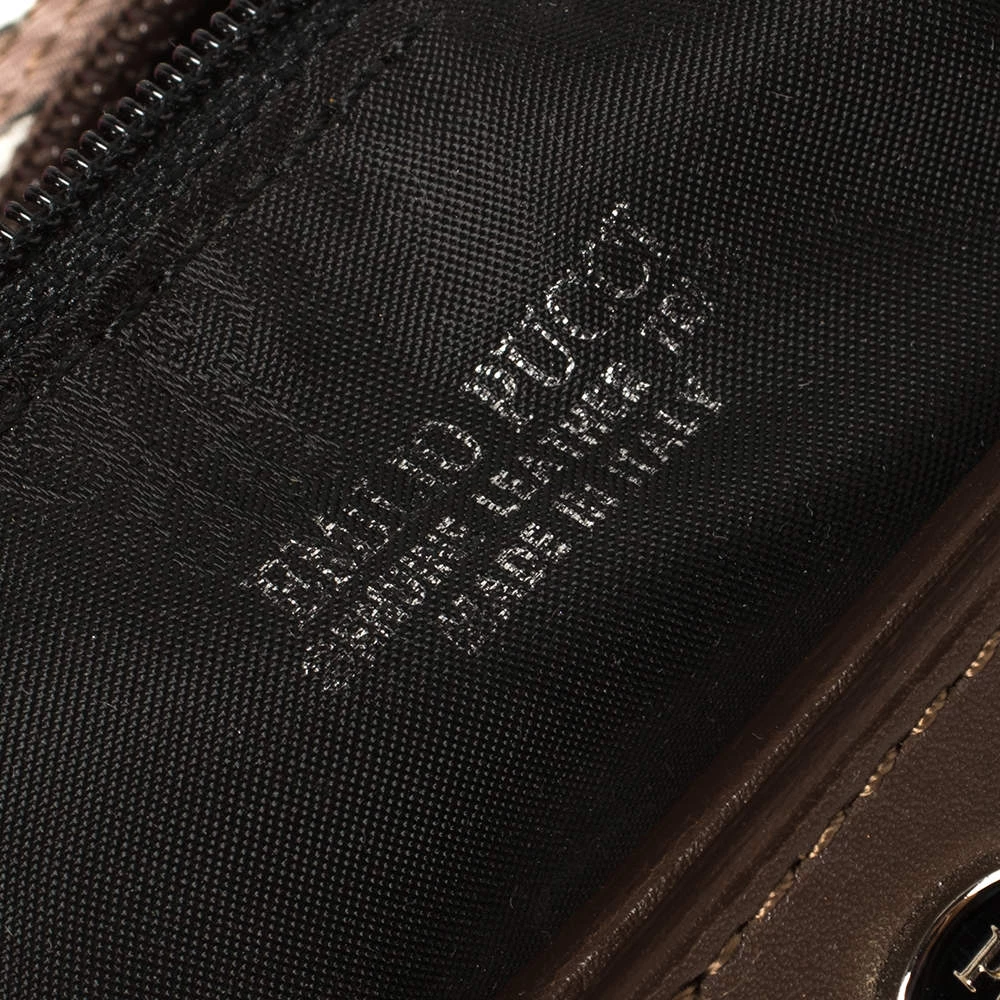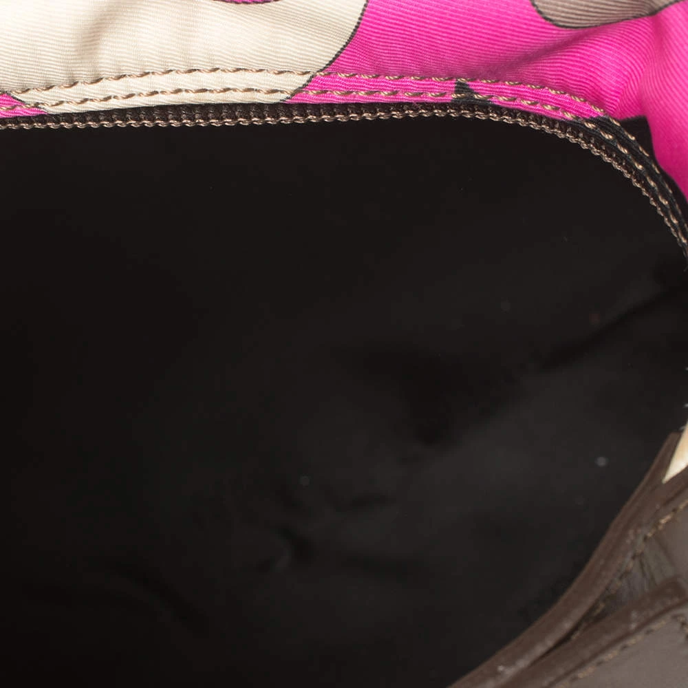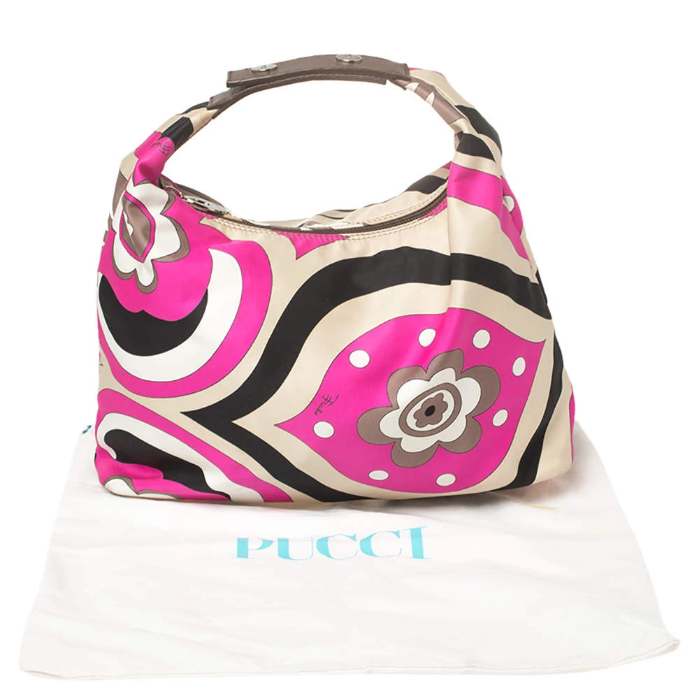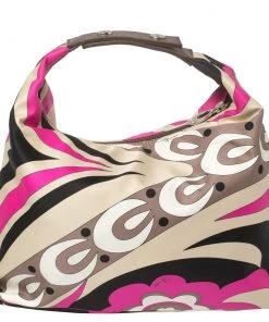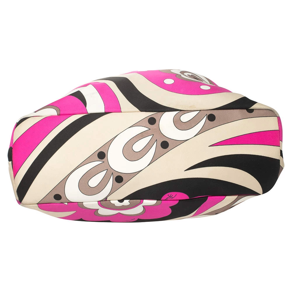 This designer clutch bag by Emilio Pucci carries a signature look of prints and vivid colors. Made from fabric, the clutch has a single handle and a lined interior to house your day’s essentials with ease.