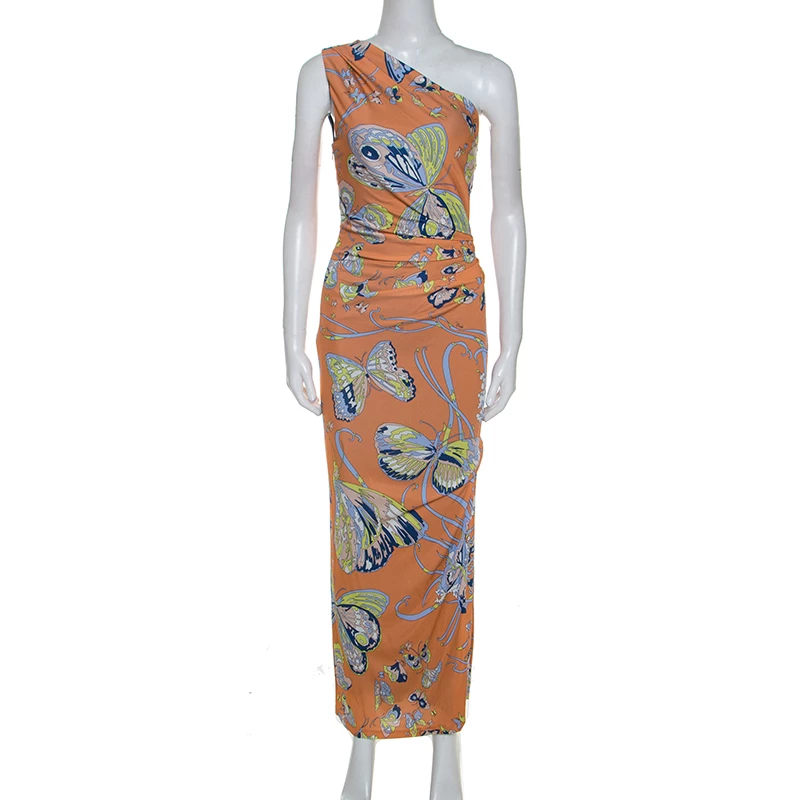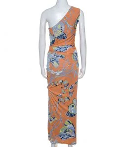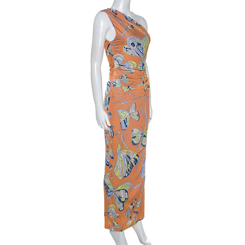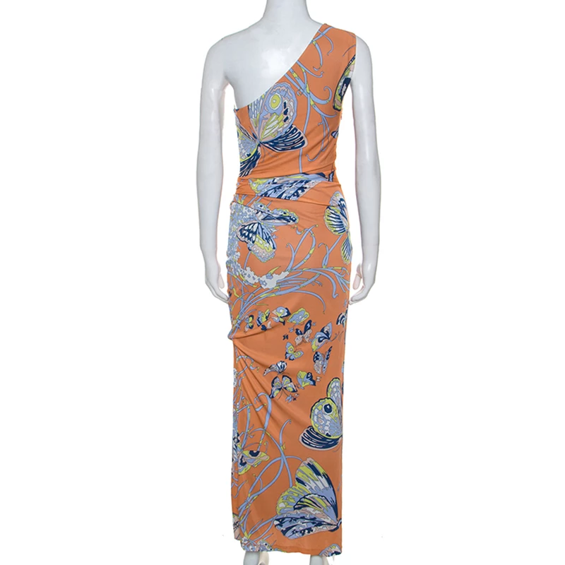 Make a style statement with this dress from Emilio Pucci. Designed to beautify, this multicolor piece is ideal for casual gatherings. This stunning dress comes as one-shoulder with a side zipper and prints all over.