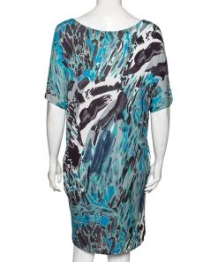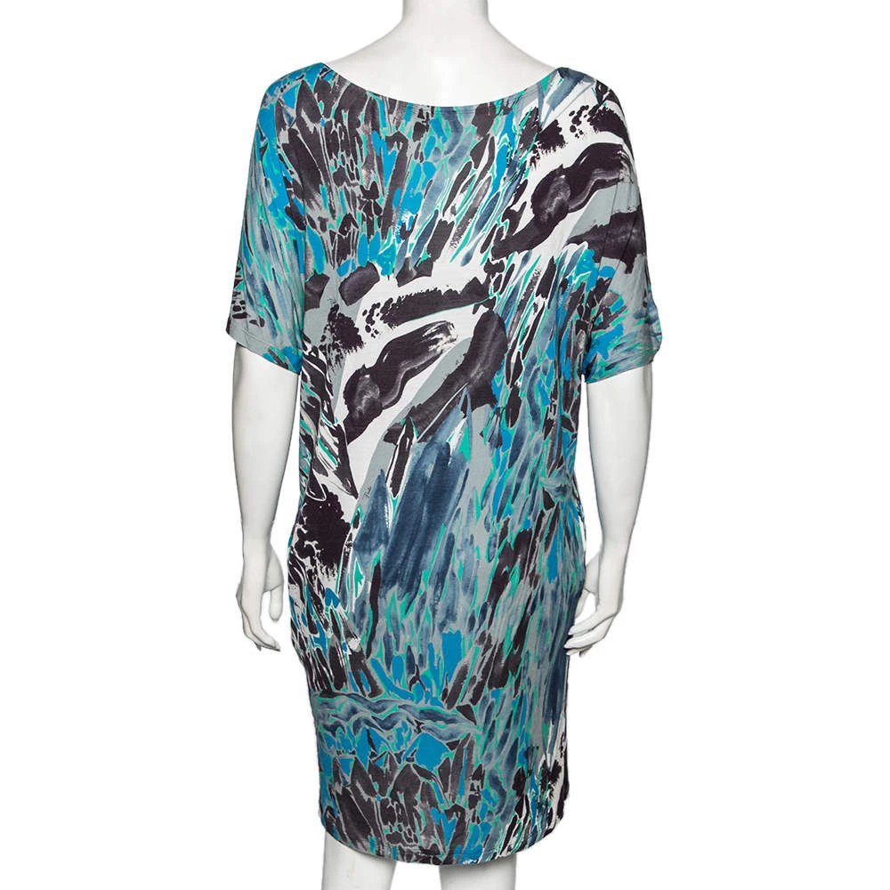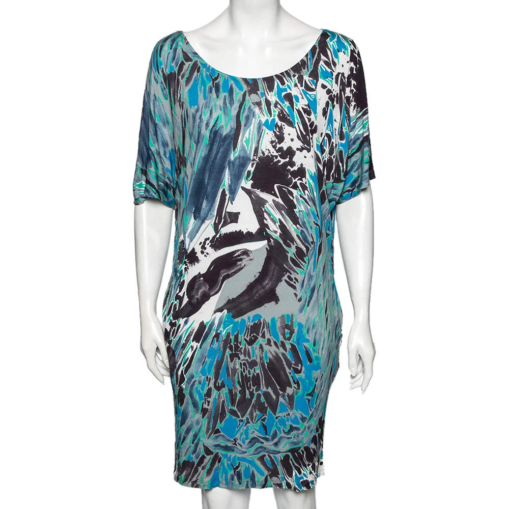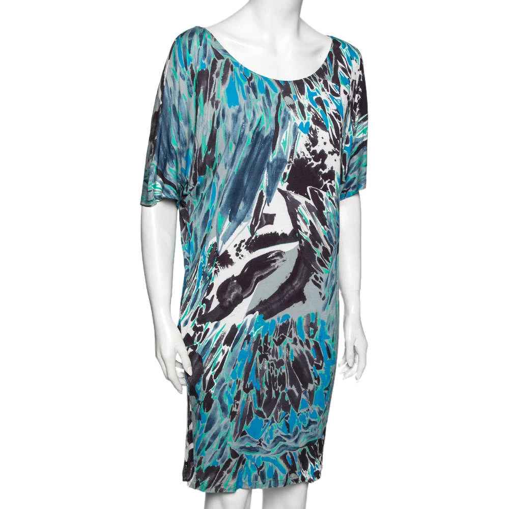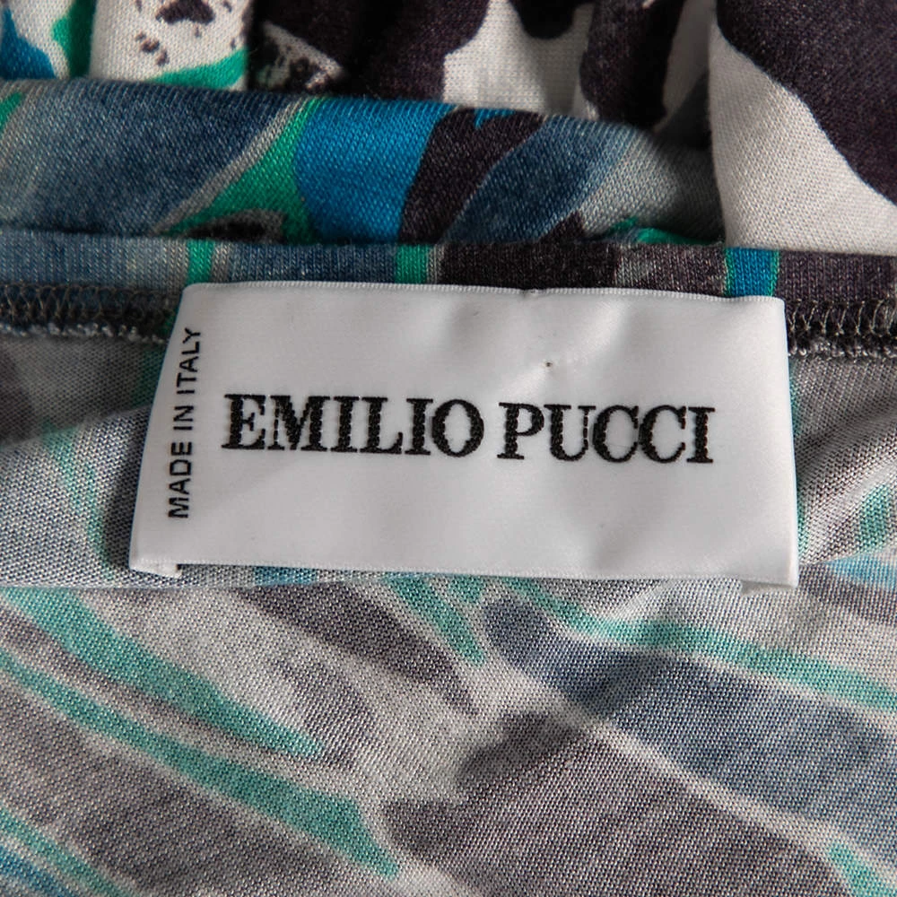 A perfect outfit for summer is this Emilio Pucci multicolored dress that has been made from fine materials. The printed piece comes with short sleeves and a relaxed silhouette. It will look great with flat sandals and a crossbody bag.