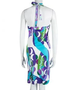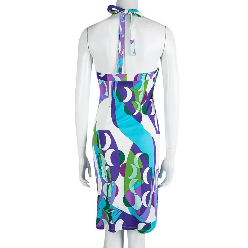 This dress from Emilio Pucci has an abstract print all over. The multicolor dress is halter neck in style and falls just above the knee. A refreshing summer outfit, team it up with flip-flops to complete the look.