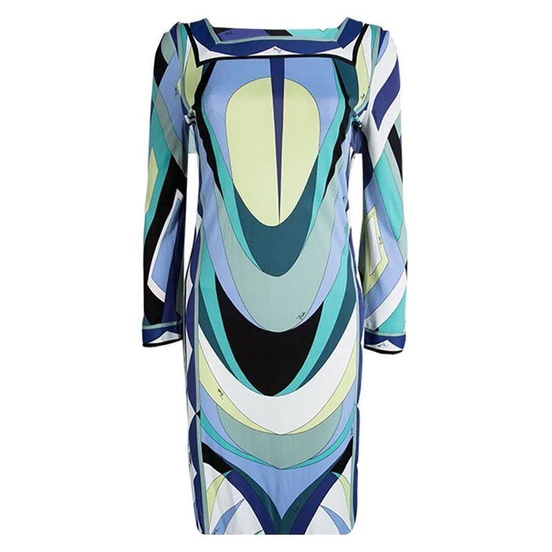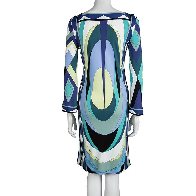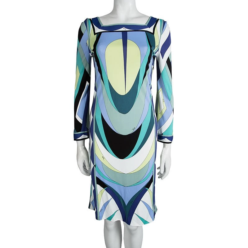 Creating very versatile and comfortable pieces Emilo Pucci likes to showcase kaleidoscopic patterns on their dresses, like this multicolour printed shift dress. Boasting of a woman with a carefree spirit this square neck knee length dress is appropriate for day time use for any kind of occasion while never compromising on style.