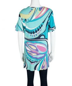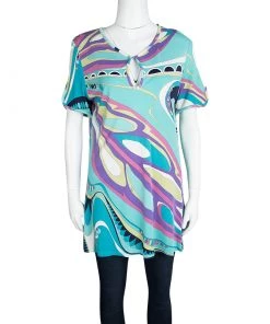 Emilio Pucci brings you this gorgeous tunic that has been tailored from quality materials and designed with short sleeves and prints in multiple colours. You can wear it with skinny pants and high heels.