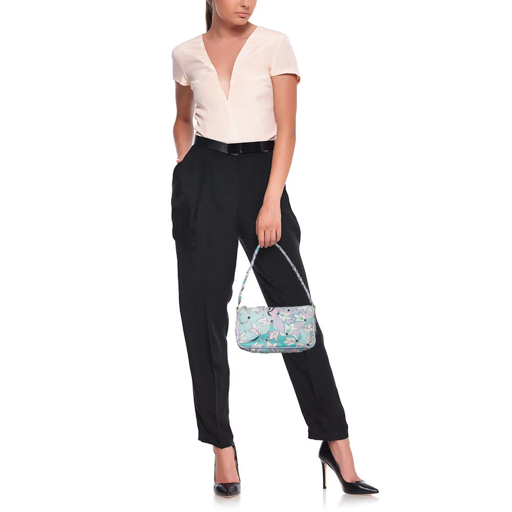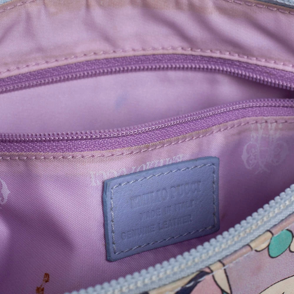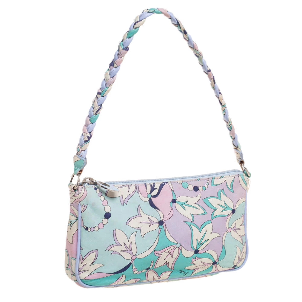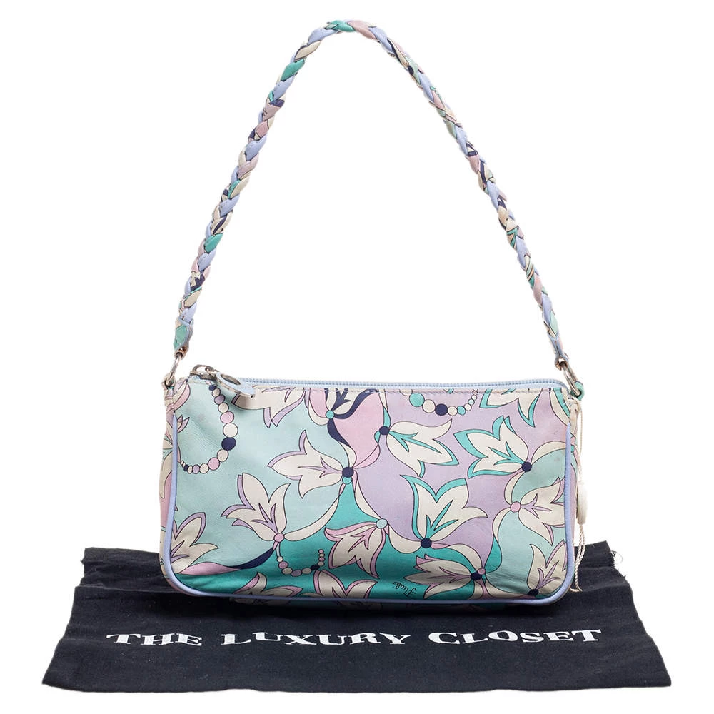 This stunning Pochette from Emilio Pucci deserves a very special place in your wardrobe! The multicolor bag is crafted from leather and features a lovely print all over it. It has a single braided handle and a zip closure that reveals a well-sized interior for all your essentials.