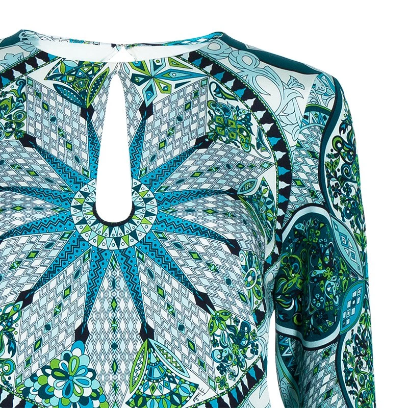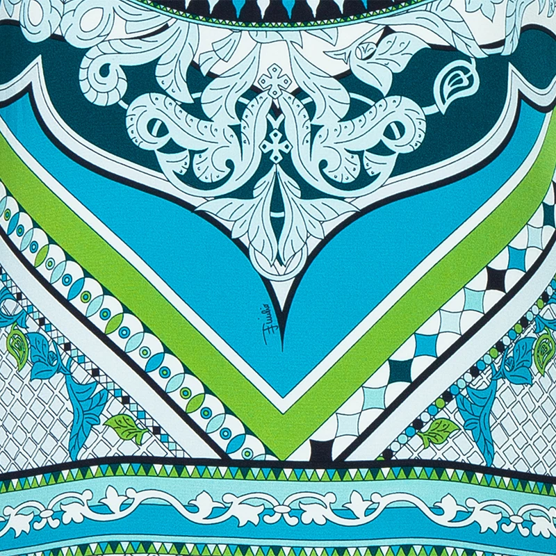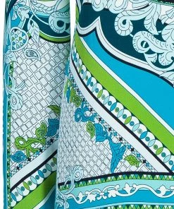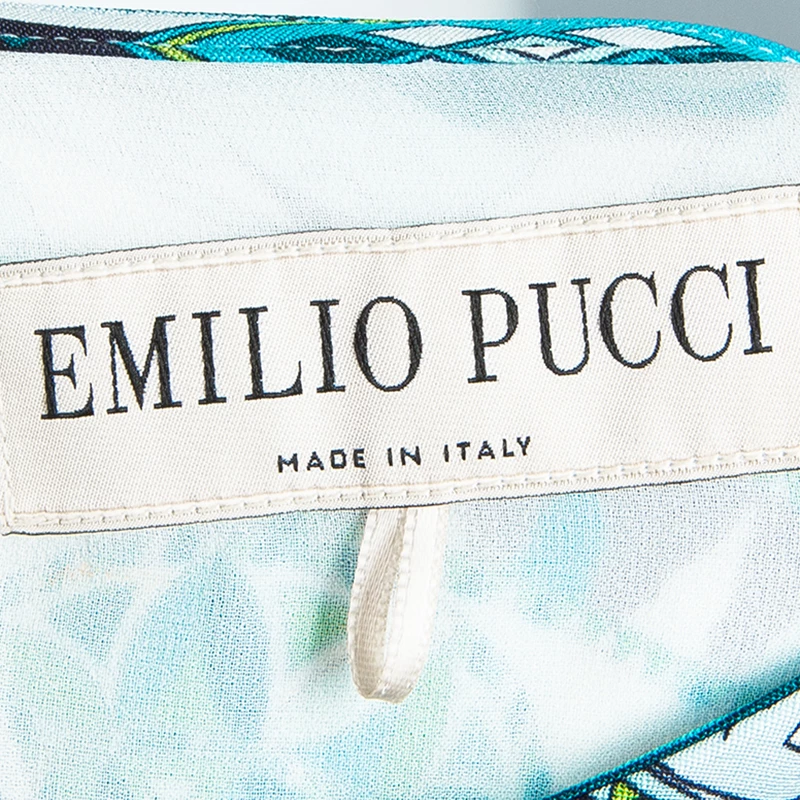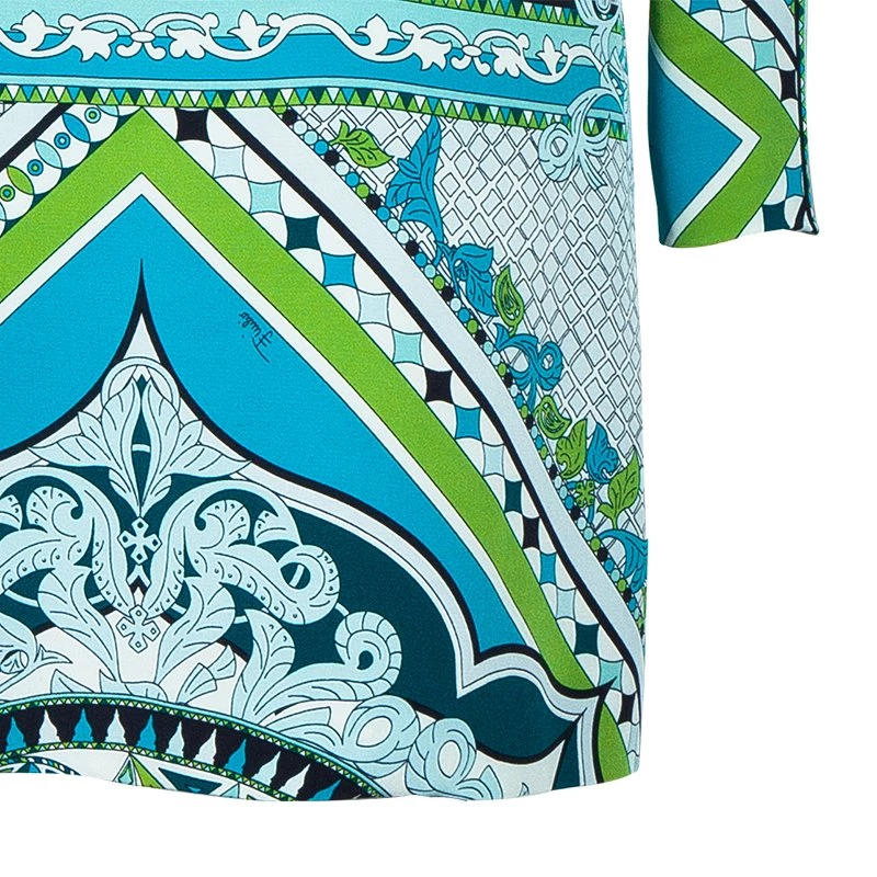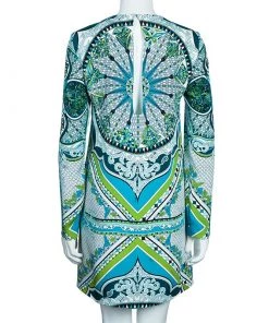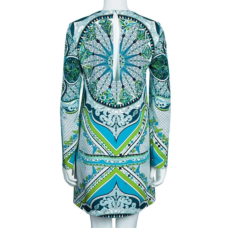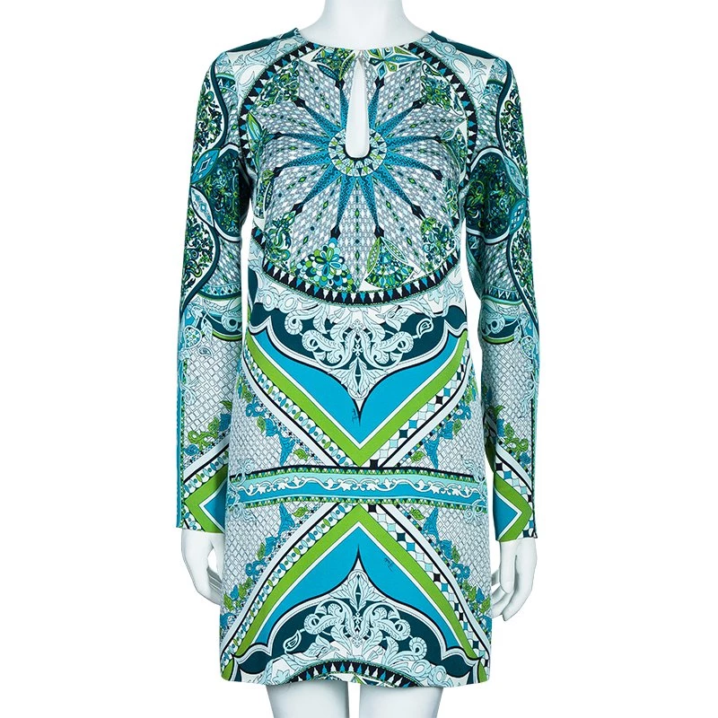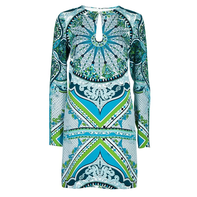 A perfect evening attire, this shift dress by Emilio Pucci is truly flamboyant. It has been made out of 100% silk and features full sleeves and a rear top single button fastening. This printed short dress can be paired with espadrilles or gladiators for a distinguished look.