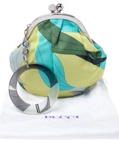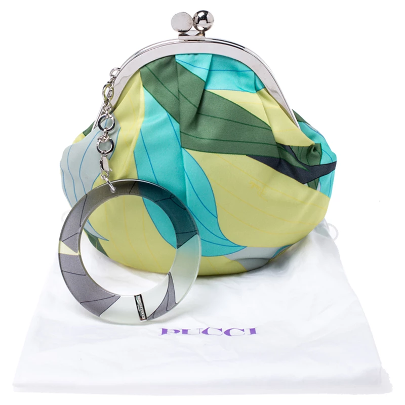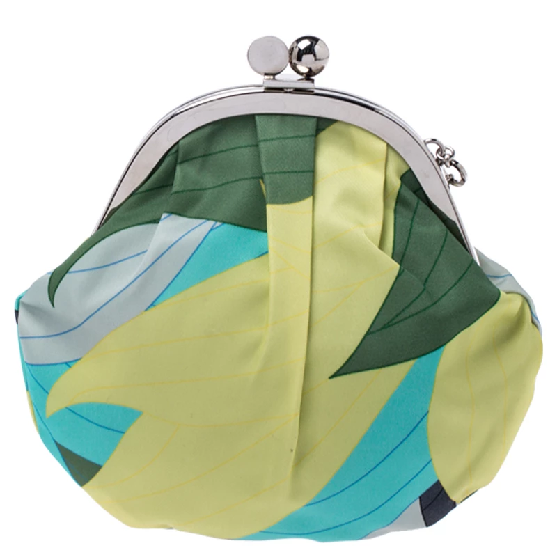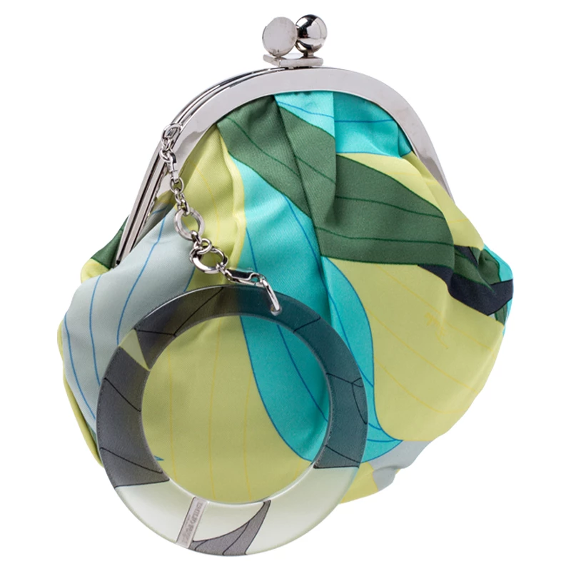 Emilio Pucci’s coin purse has been expertly crafted from multicolored printed nylon and secured with kiss-lock closure. It opens to a nylon-lined interior where you can store all your coins. It is complete with a well-designed charm attachment.