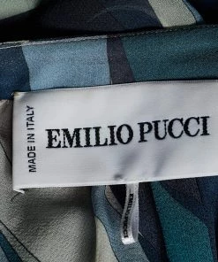 Enhance your summer style by wearing this blouse from the House of Emilio Pucci. Featuring multicolored prints, this blouse is tailored using silk fabric and is augmented with embellishments on the front. Match this top with light jeans to sport a trendy style.