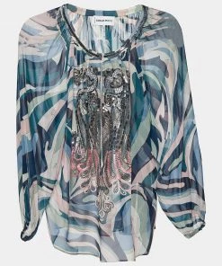 Enhance your summer style by wearing this blouse from the House of Emilio Pucci. Featuring multicolored prints, this blouse is tailored using silk fabric and is augmented with embellishments on the front. Match this top with light jeans to sport a trendy style.