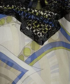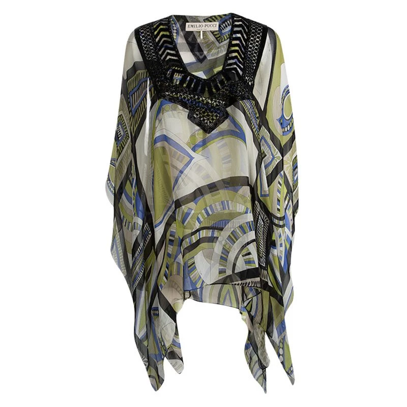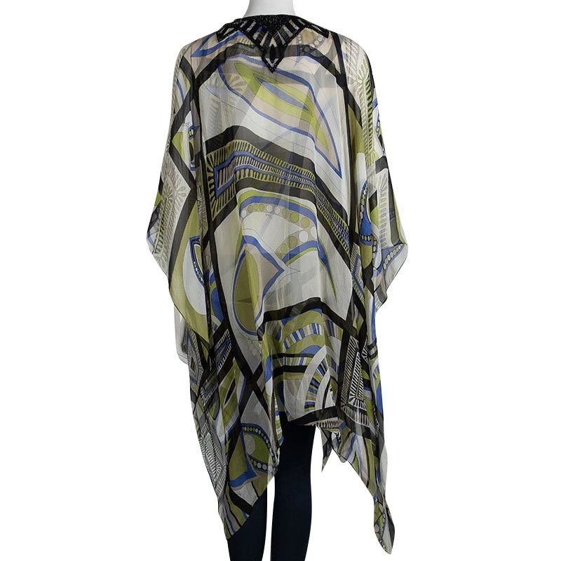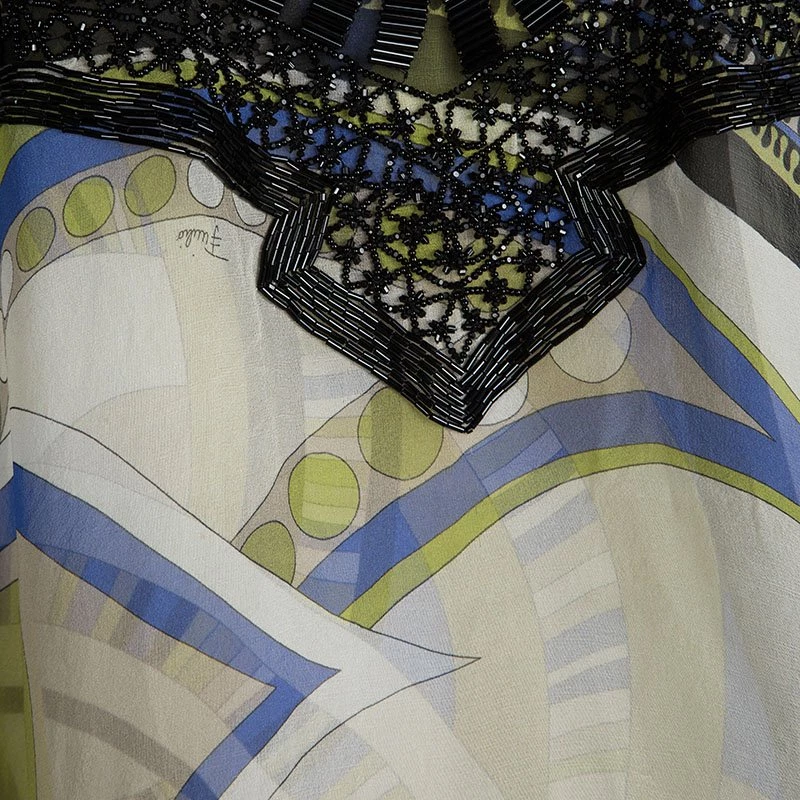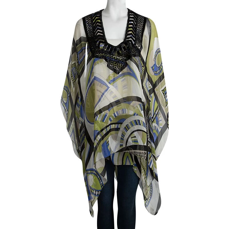 Easy to carry and just perfect for the season, this Emilio Pucci Kaftan will be a wardrobe favorite. It has been cut from silk and styled in a silhouette that is trendy and fuss-free. The neck is decorated with beads which give the piece a stylish touch. Wear this Kaftan with your leggings and flared trousers.