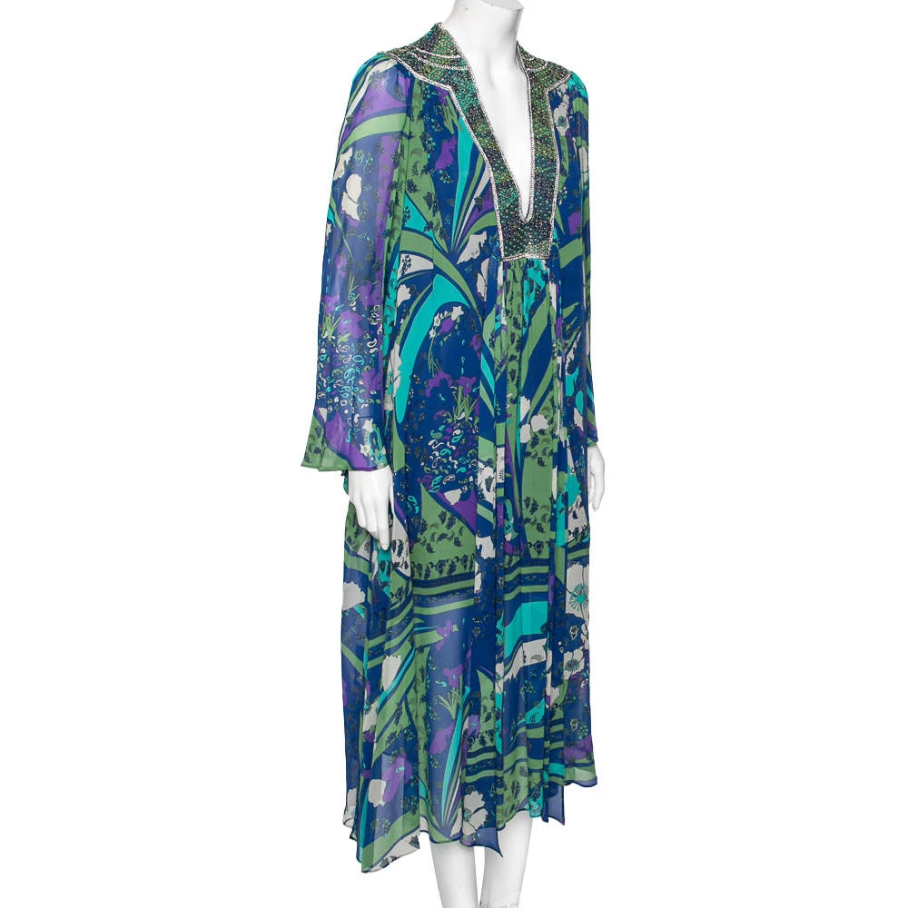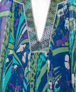 A stylish piece like this multicolored dress from Emilio Pucci is a must-have. It is stitched using printed silk fabric and comes with long sleeves and a stunning embellished neck detail. Add a splash of color to your ensemble by wearing this lovely dress with high heels and minimal jewelry.