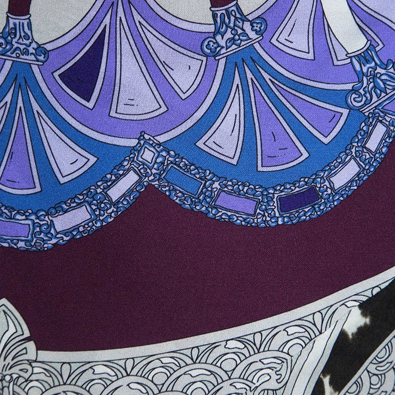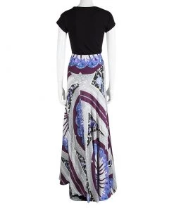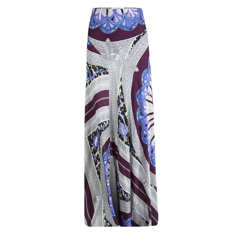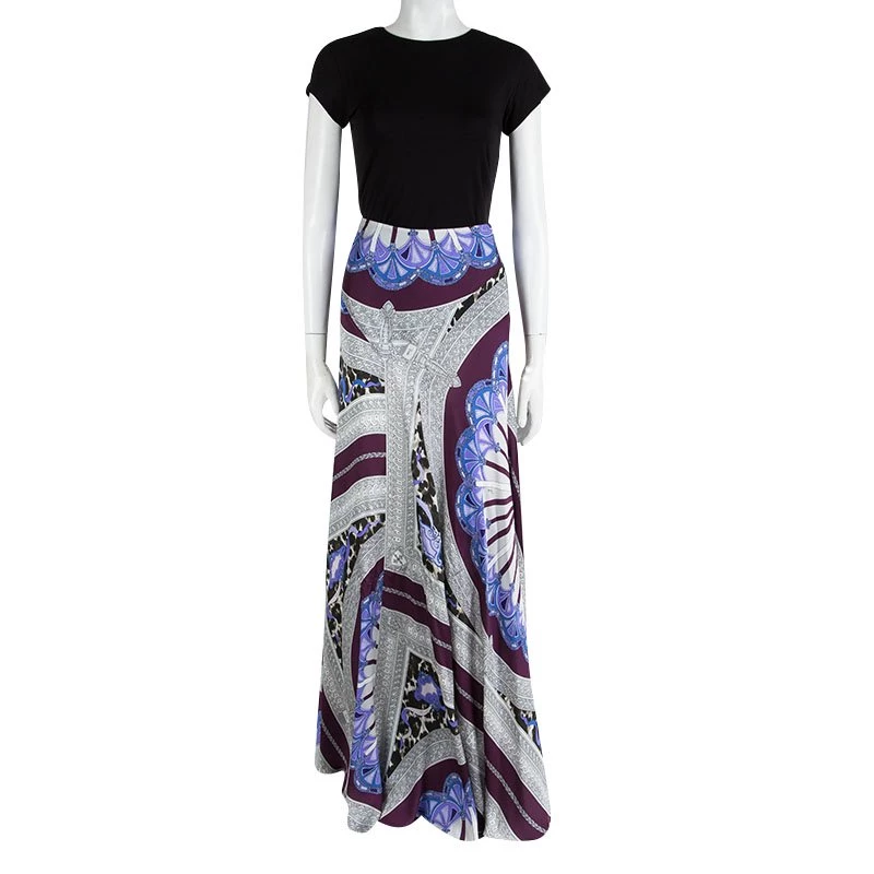 Dazzle your looks in the most stylish designer skirt of the season. With an intricate amalgamation of prints, this elegant maxi skirt by Emilio Pucci tailored in pure silk material flaunts an exuberant appeal. Featuring a neatly pleated silhouette, it has a floor-grazing length that flows beautifully with every step.