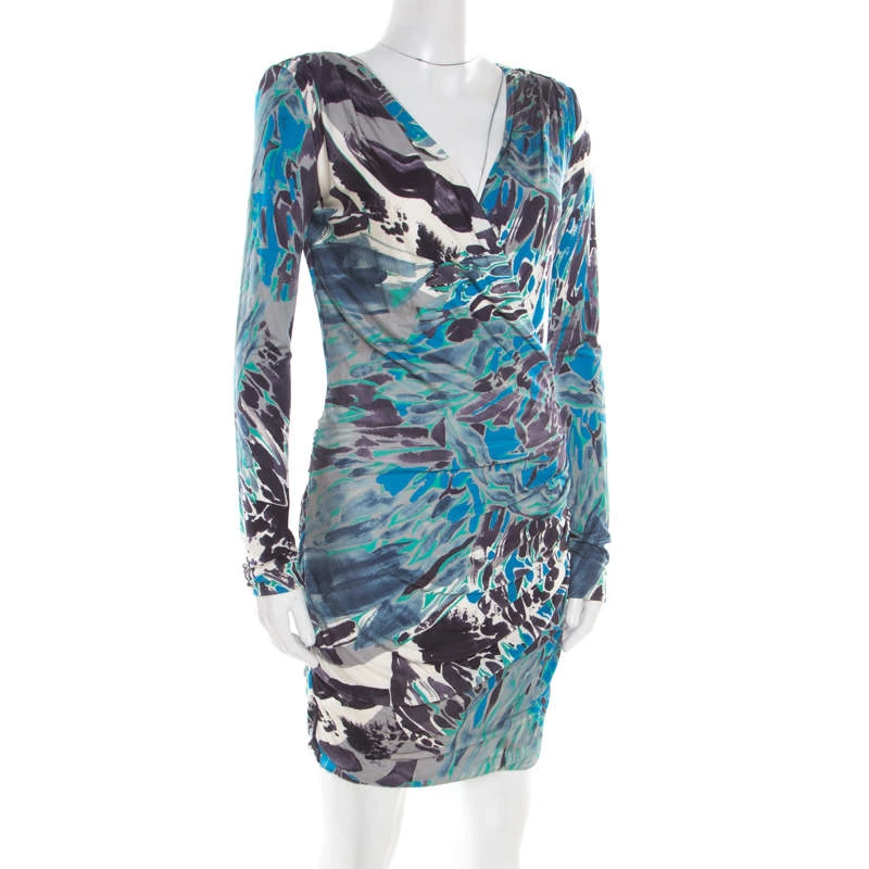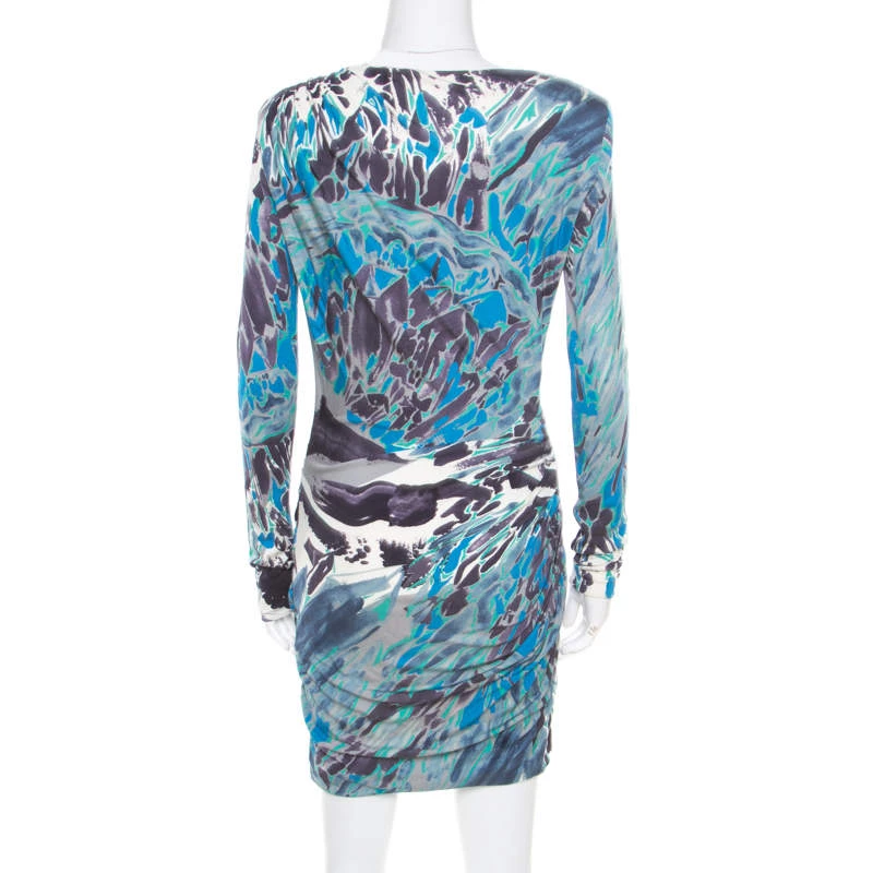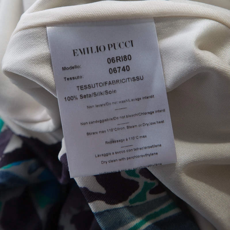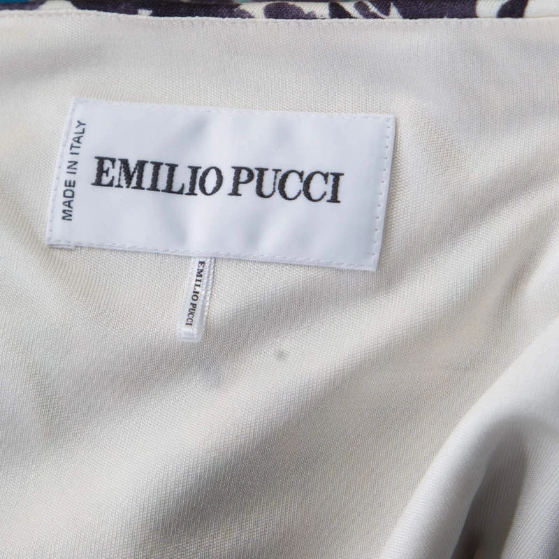 Leave everyone in awe whenever you step out in this gorgeous dress by Emilio Pucci! Made from 100% silk, the dress has a flattering silhouette with very elegant draping details and power shoulders. You can assemble the complete look with a pair of metallic sandals.