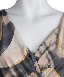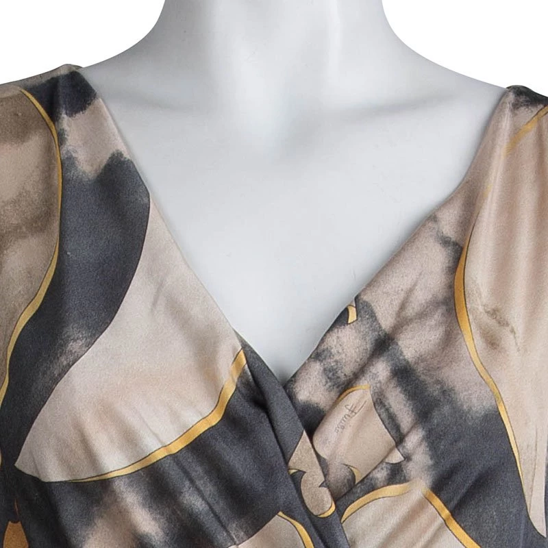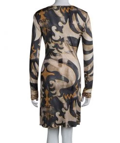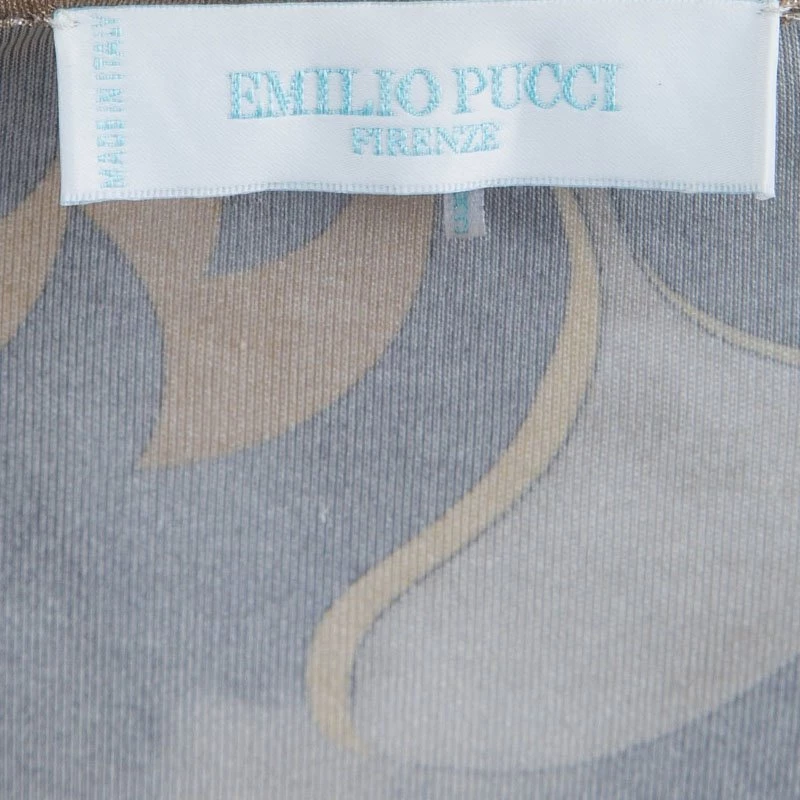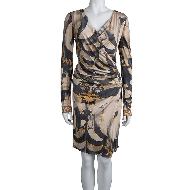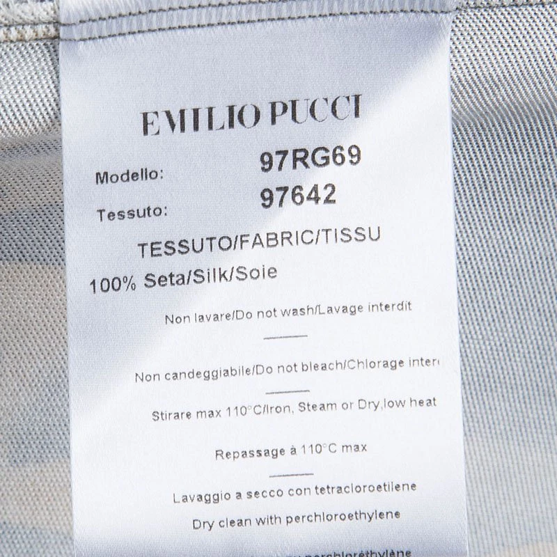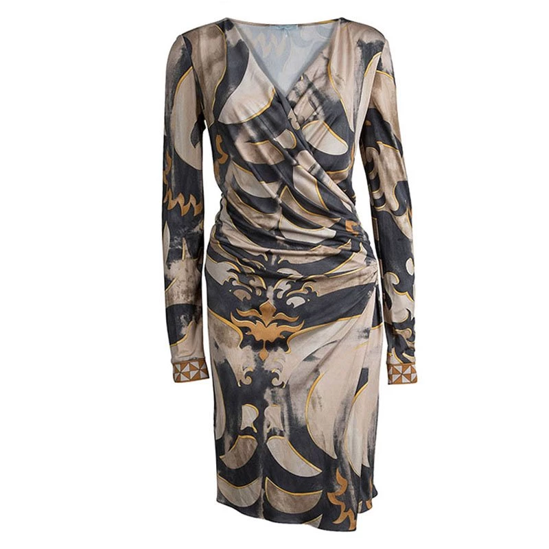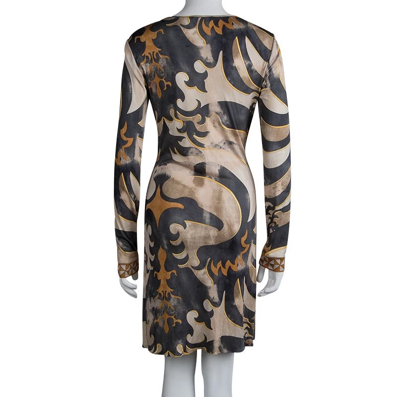 In 100% silk, this Emilio Pucci multi-colour knit dress is artfully draped to provide a flattering shape. Long sleeved and falling gracefully to the knee, this dress is elegant and suitable for a variety of occasions. This dress would look fabulous accessorised with gold jewellery and a pair of nude pumps.