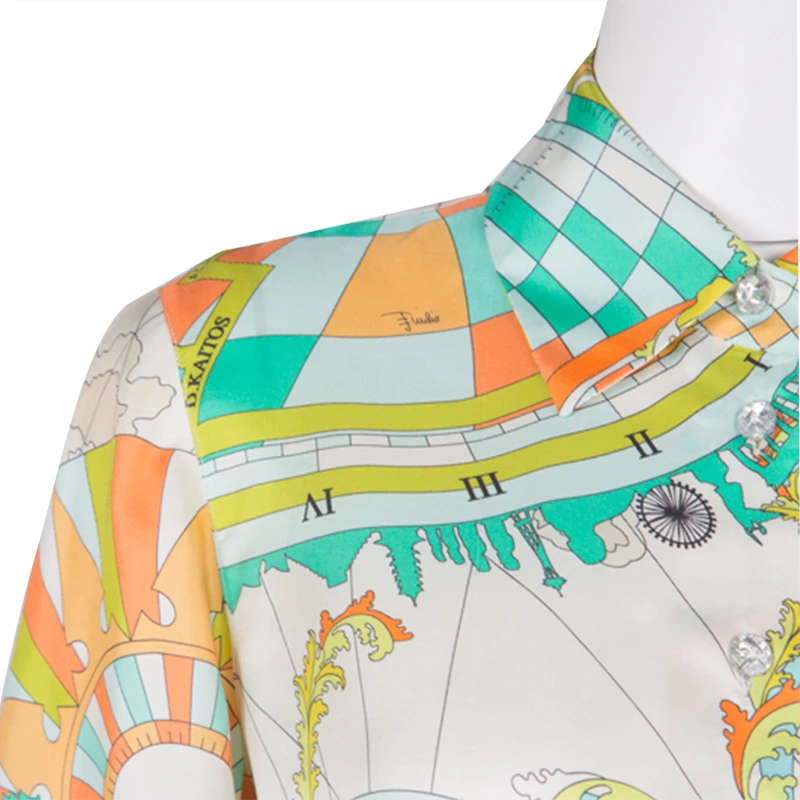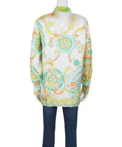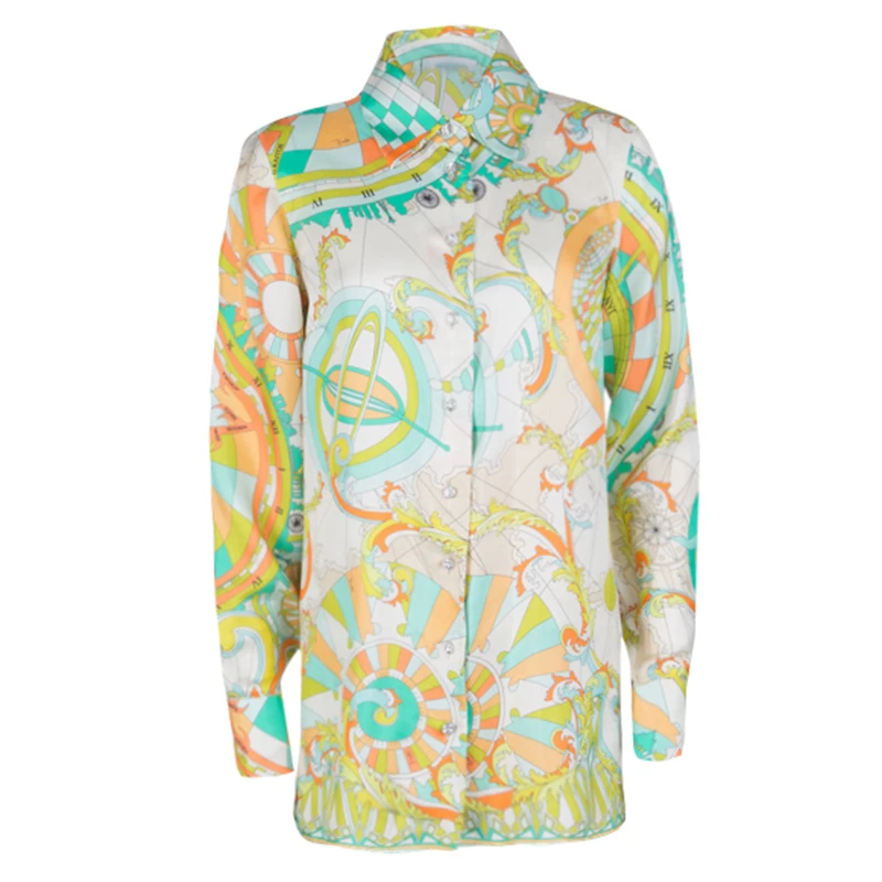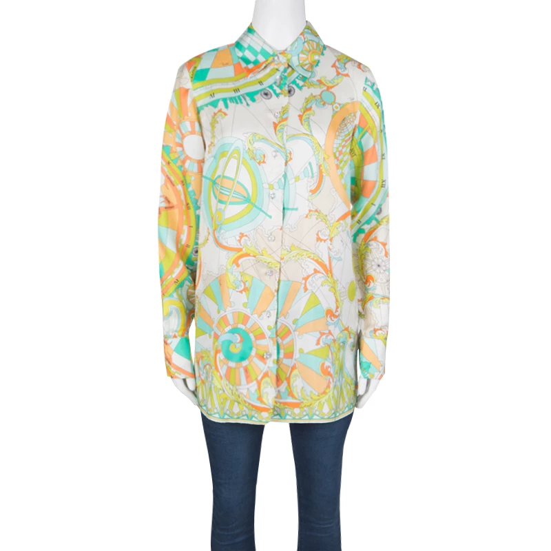 Emilio Pucci brings to you a simple silhouette in a quirky new avatar. This psychedelically printed blouse with a front closure detail is perfectly designed to meet your fashion needs. Let the soft silk fabric of this long sleeves blouse keep you comfortable and relaxed while you flaunt a style statement.