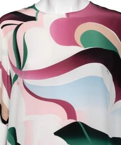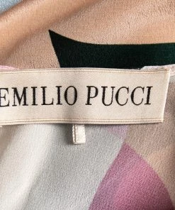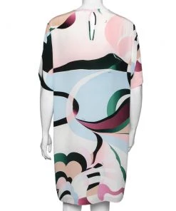 This dress from the House of Emilio Pucci defines elegance and poise with its chic silhouette. It is tailored using multicolored printed silk fabric. It has short sleeves, a relaxed fit, and a buttoned closure. Make a style statement as you wear this lovely dress.