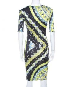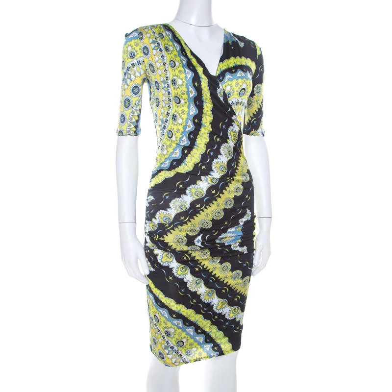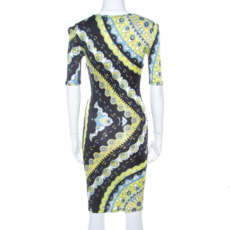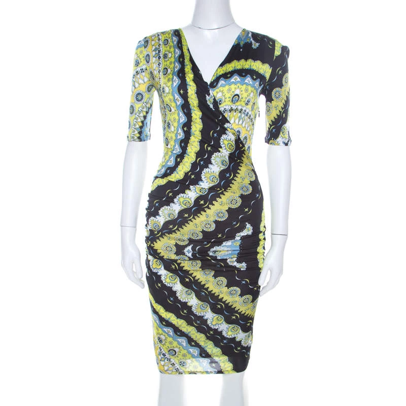 This lovely creation of this Emilio Pucci dress stands out. Style this multicolour dress with fun accessories to create a fashion-forward look. Feminine and stylish, this printed outfit with a plunging neckline is a masterpiece in any fashionista’s collection.