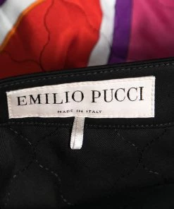 Famously known for its colorful prints and chic silhouettes, the House of Emilio Pucci brings us yet another elegant creation. This mini skirt is fashioned in multicolored quilted pattern cotton fabric. It is equipped with a zipper closure. Match this mini skirt with a black blouse and flaunt a trendy style.
