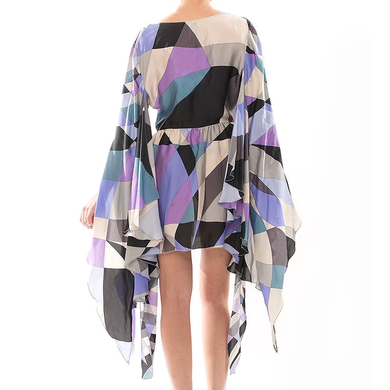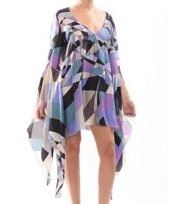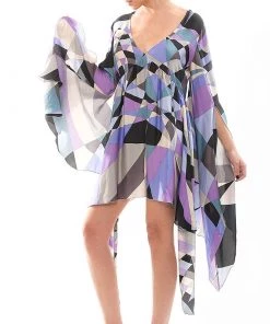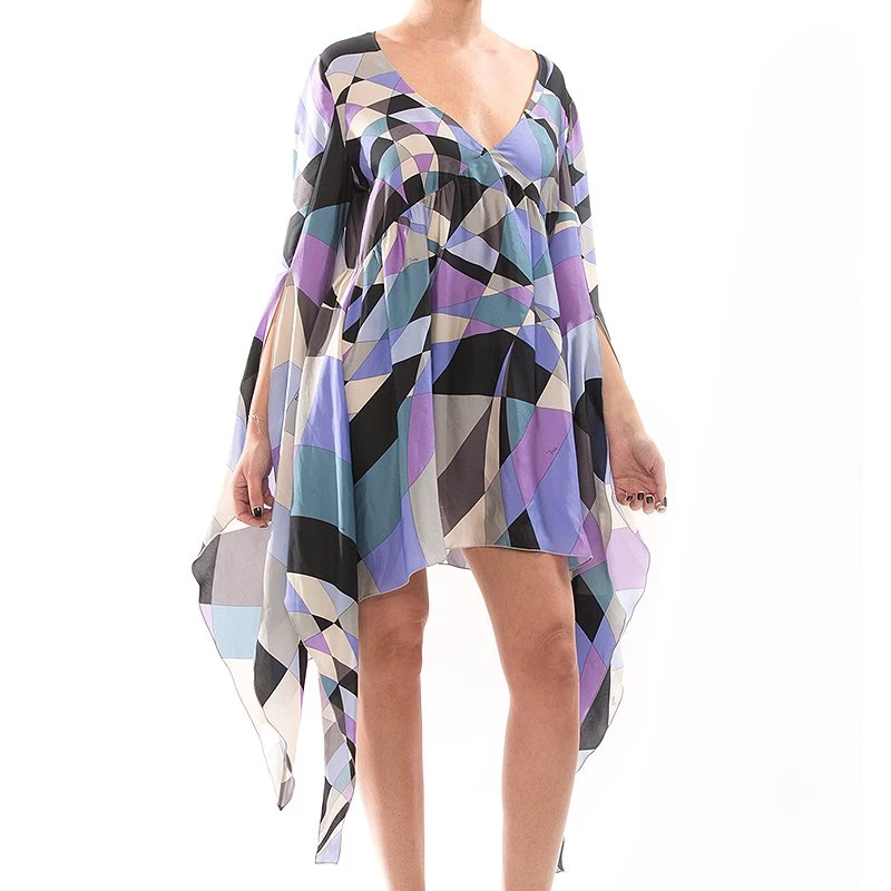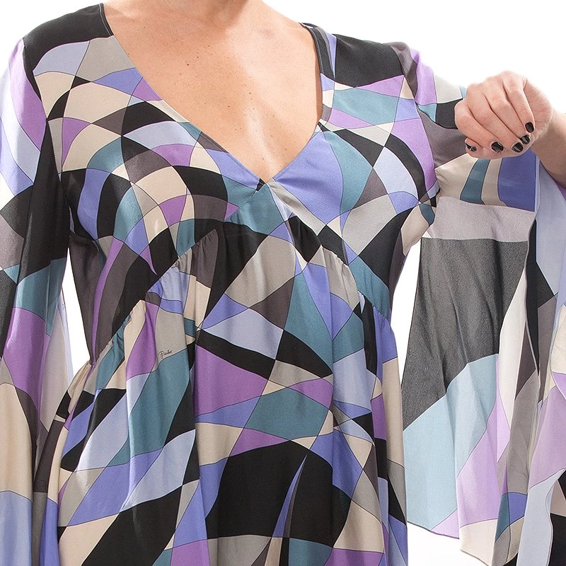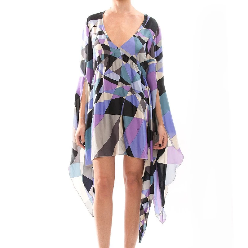 Presenting this chic and voguish outfit designed by Emilio Pucci for elegance. The multicolored silk kaftan dress is fabricated from viscose and is designed with creative loose cut long sleeves. Team it up with the favorite pair of accessories and dress up to suit the perfect occasion.