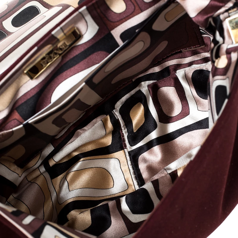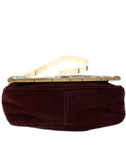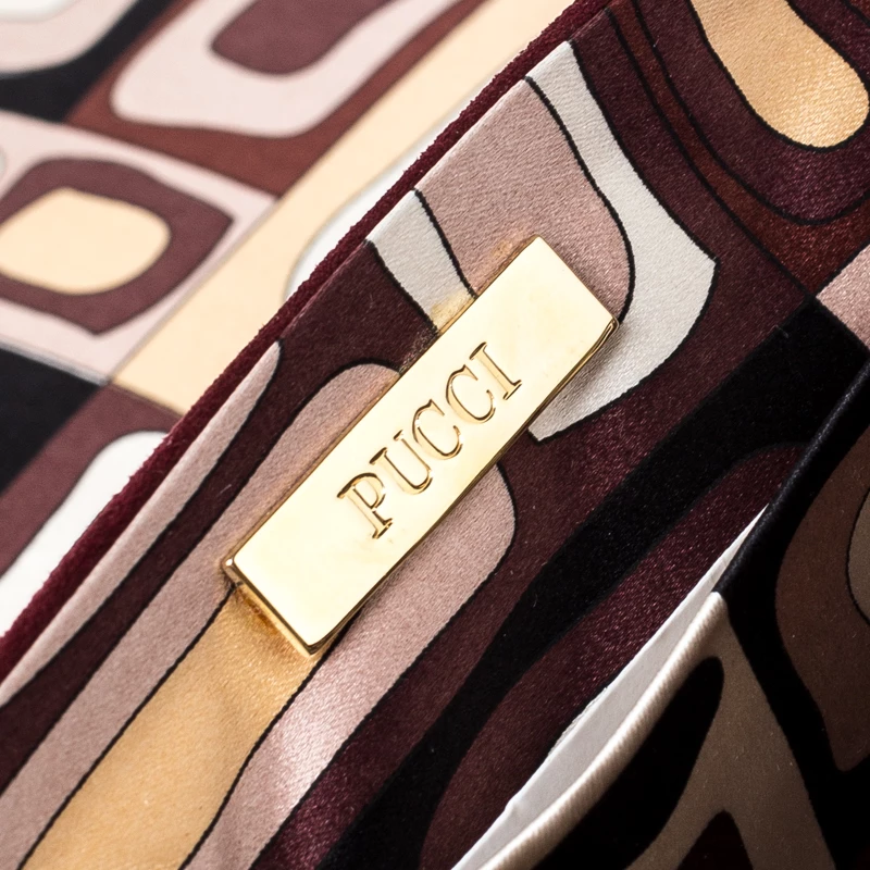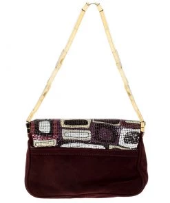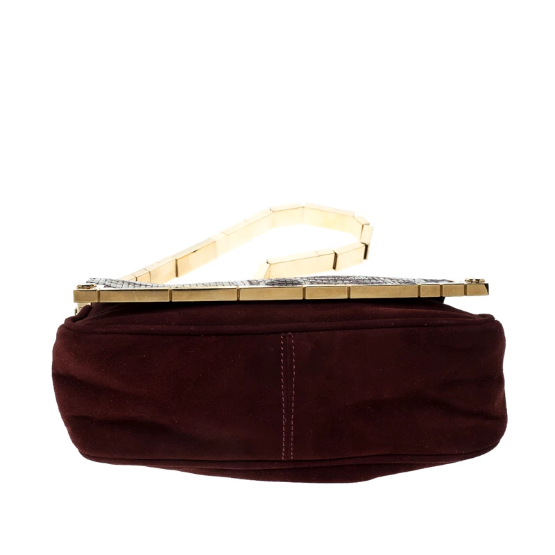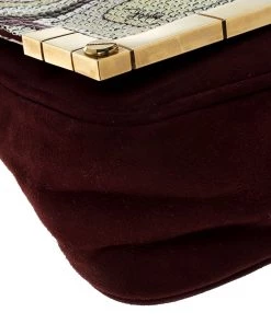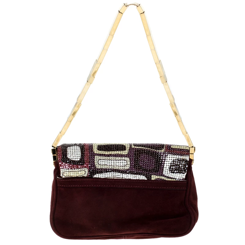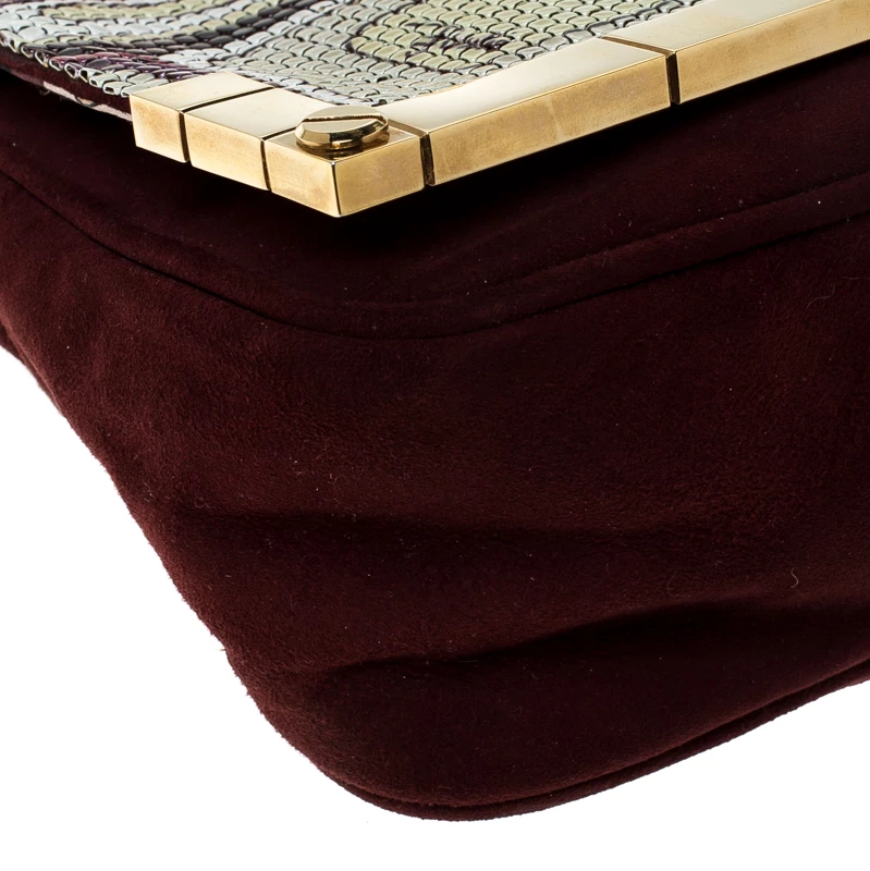 Charm your way through every gathering by swinging this flap bag from Emilio Pucci. Crafted from suede, the bag comes with a flap rendered in multicolored mesh featuring an interesting design and gold-tone metal-armored edges. It carries a spacious interior that will easily hold all your essentials and the bag is complete with a metal shoulder strap.