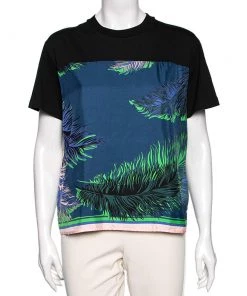 Add this stylish top from Emilio Pucci to your collection and fetch nothing but praise. It is tailored creatively using multicolored, tropical printed cotton and features short sleeves. Pair it with blue jeans and your favorite sneakers or even heels!