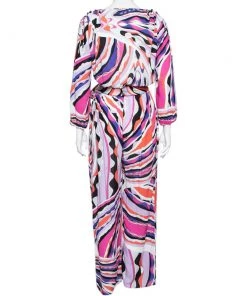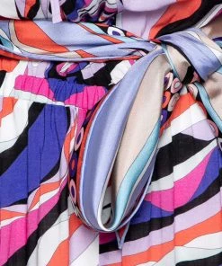 This jumpsuit from the House of Emilio Pucci will be your favorite in no time. It is tailored using multicolored abstract-printed jersey fabric and flaunts a steep V-shaped neckline. It is provided with a belted detail and two external pockets. This jumpsuit will make you look trendy!