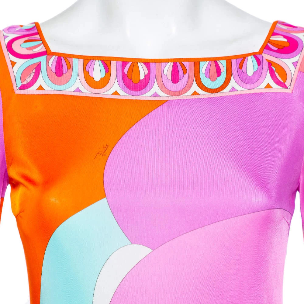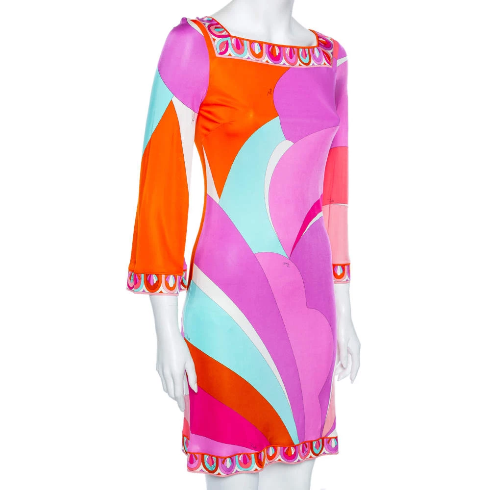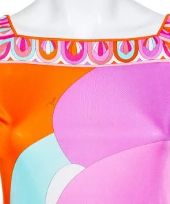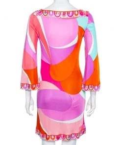 A stylish piece like this short dress from Emilio Pucci is a must-have. It is stitched using multicolored jersey fabric and comes with flared sleeves. Add a hint of color to your ensemble by wearing this lovely dress.