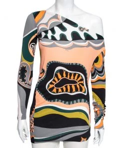 Prints in varying colors and an asymmetric neckline draw out the charm of this Emilio Pucci top. It is made of high-quality materials to give you all-day comfort.
