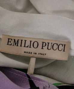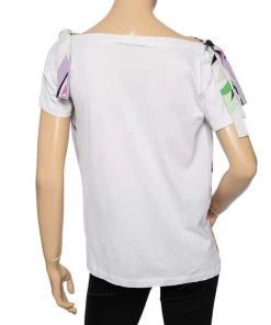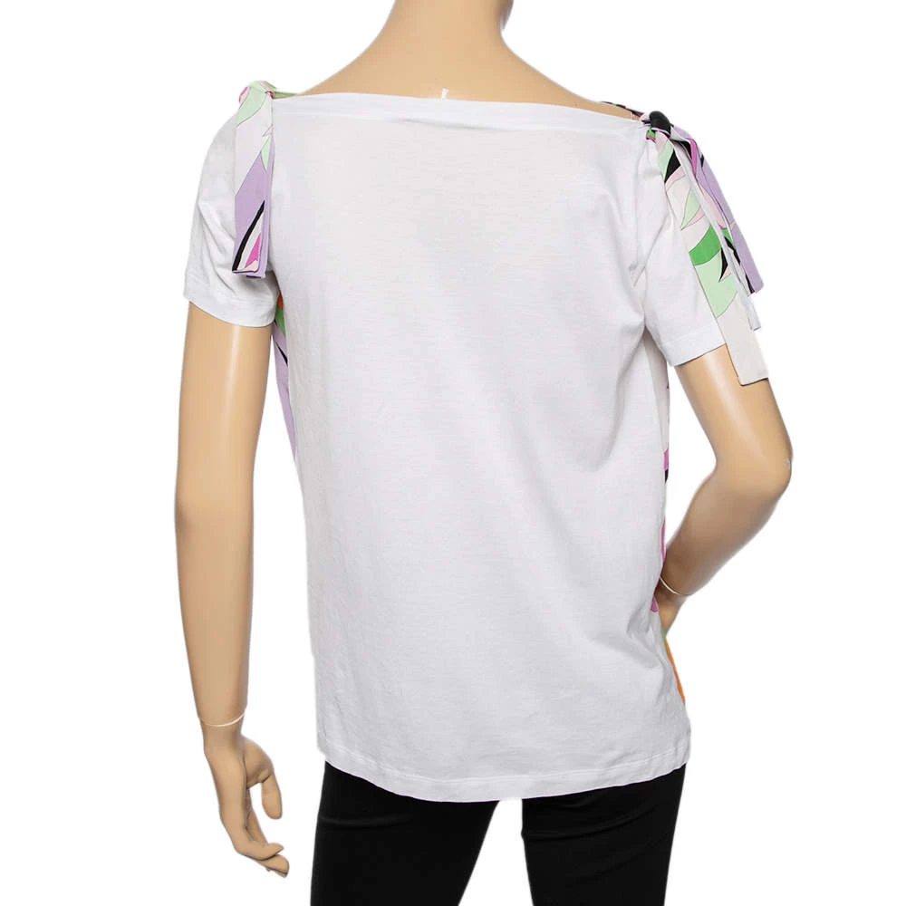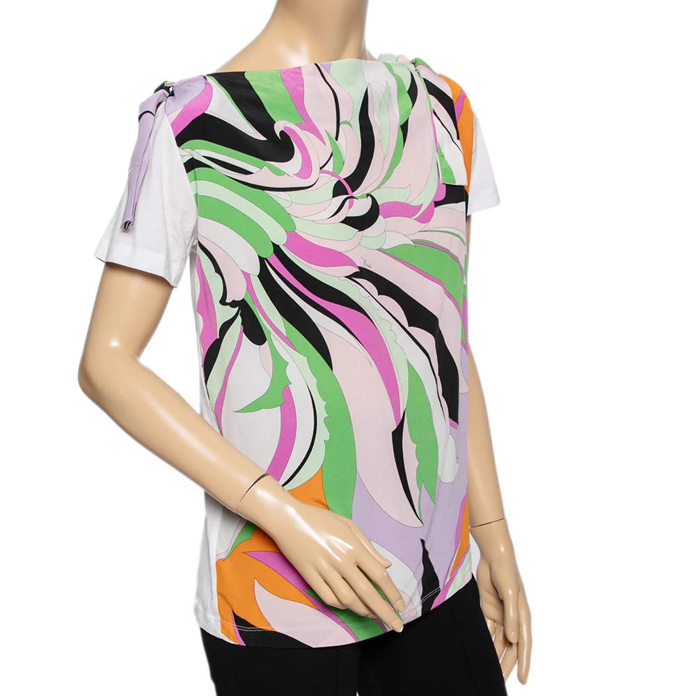 Known for its fancy and colorful prints, this T-shirt from the House of Emilio Pucci grants your a versatile style with a hint of color. It is made from multicolored printed silk and cotton fabric, which is highlighted with paneled detailing. This Emilio Pucci creation will surely be your favorite pick in no time!