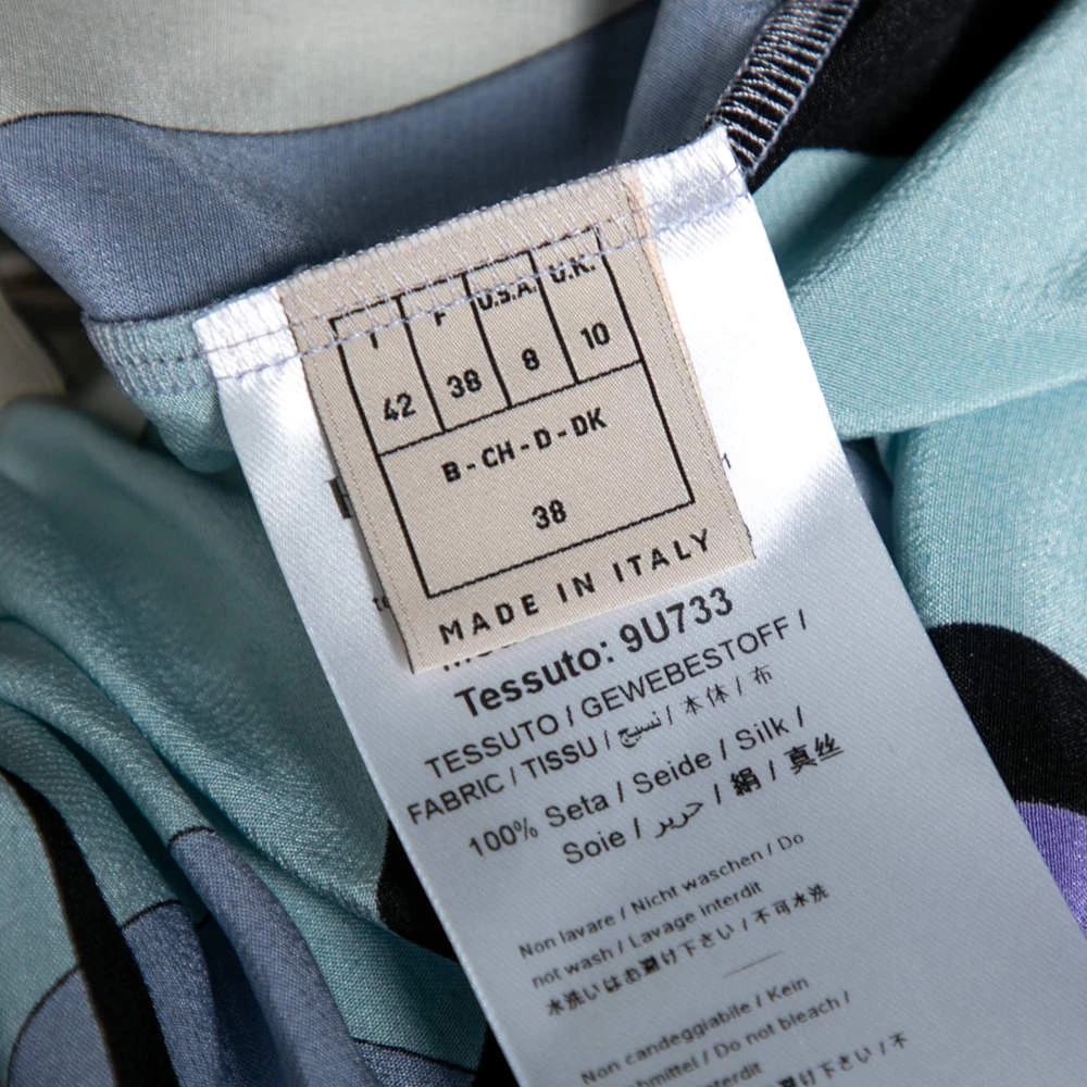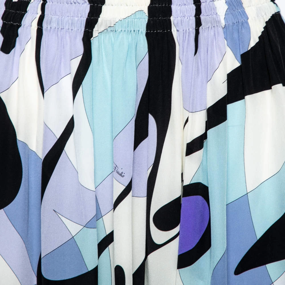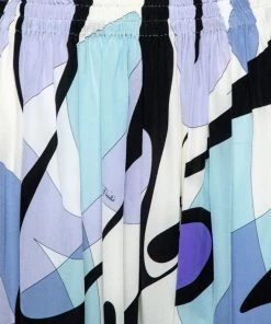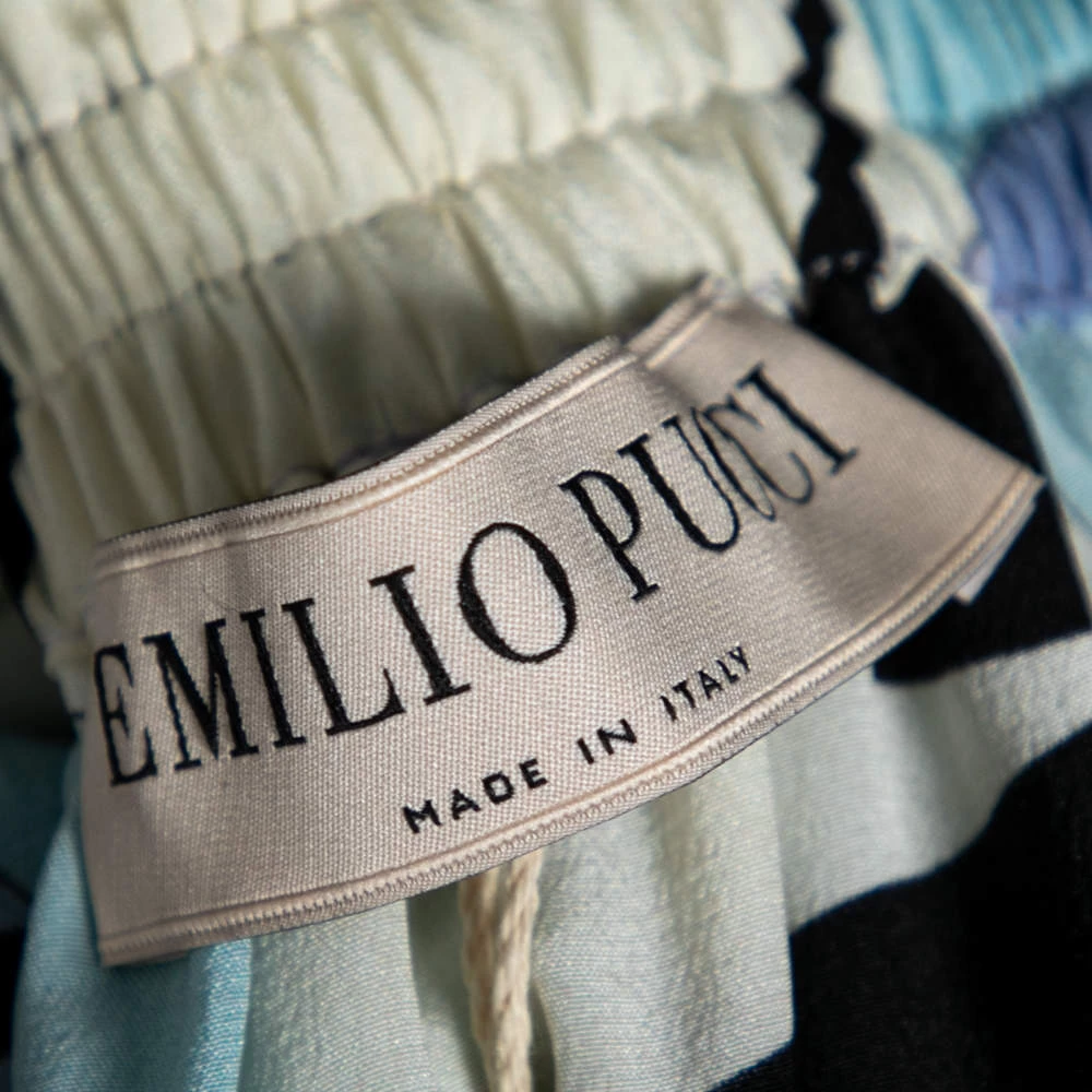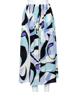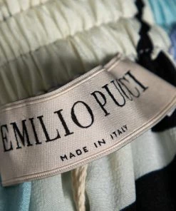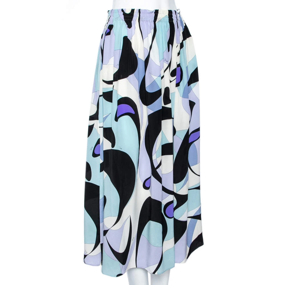 Amaze everyone at parties by wearing this gorgeous Emilio Pucci midi skirt. It is stitched from silk and has an elasticized waist. Make the multicolored skirt more charming by pairing it with a solid top and stilettos.