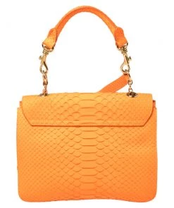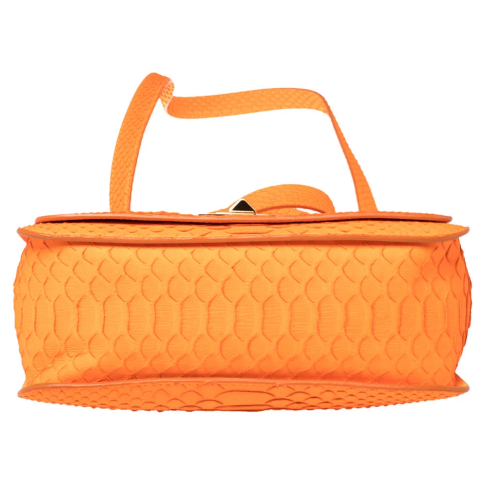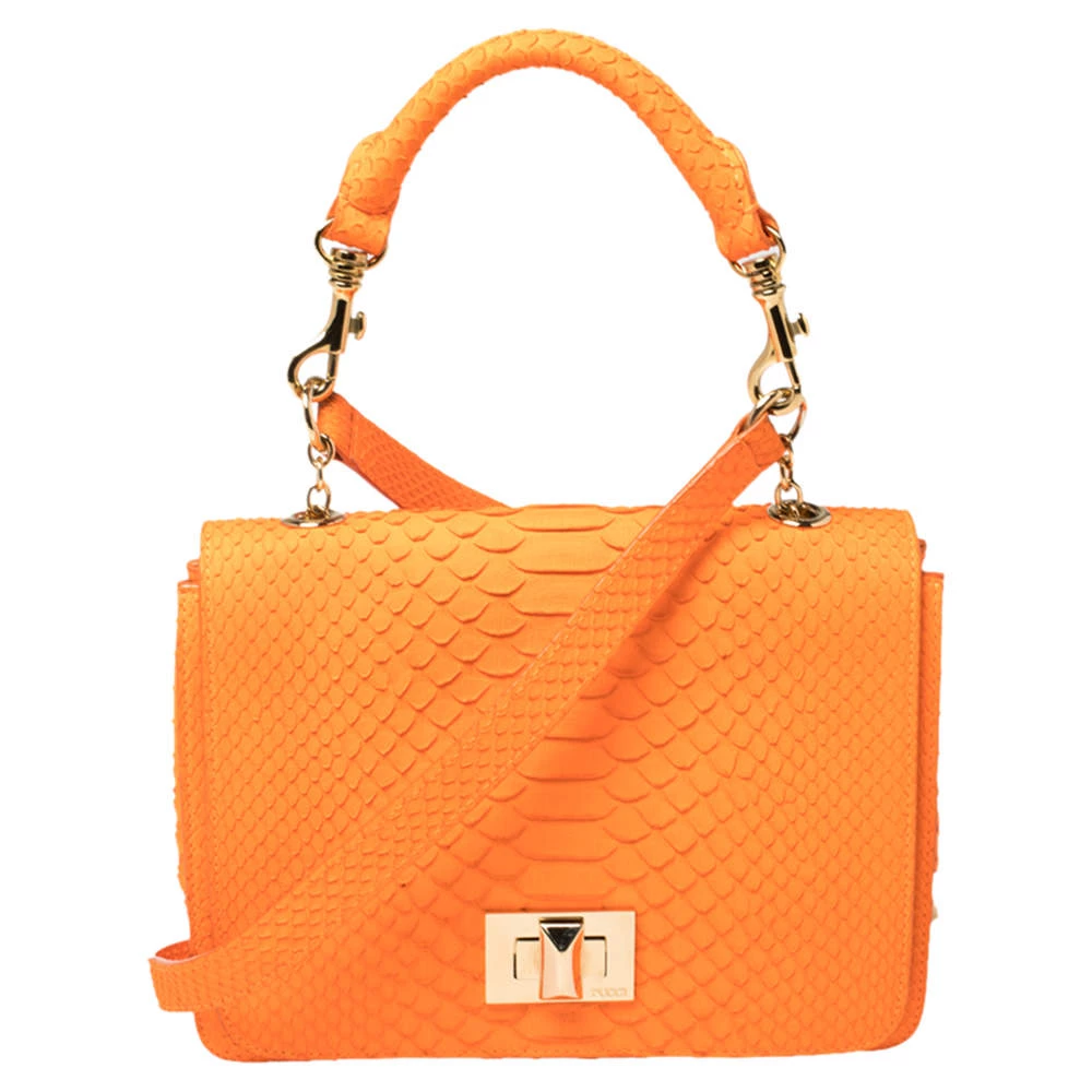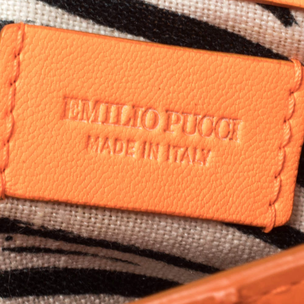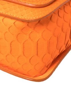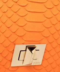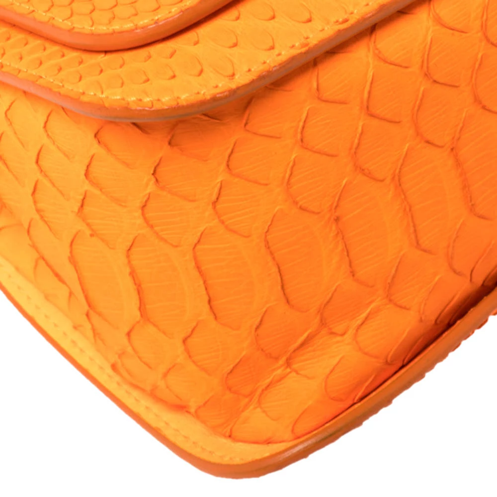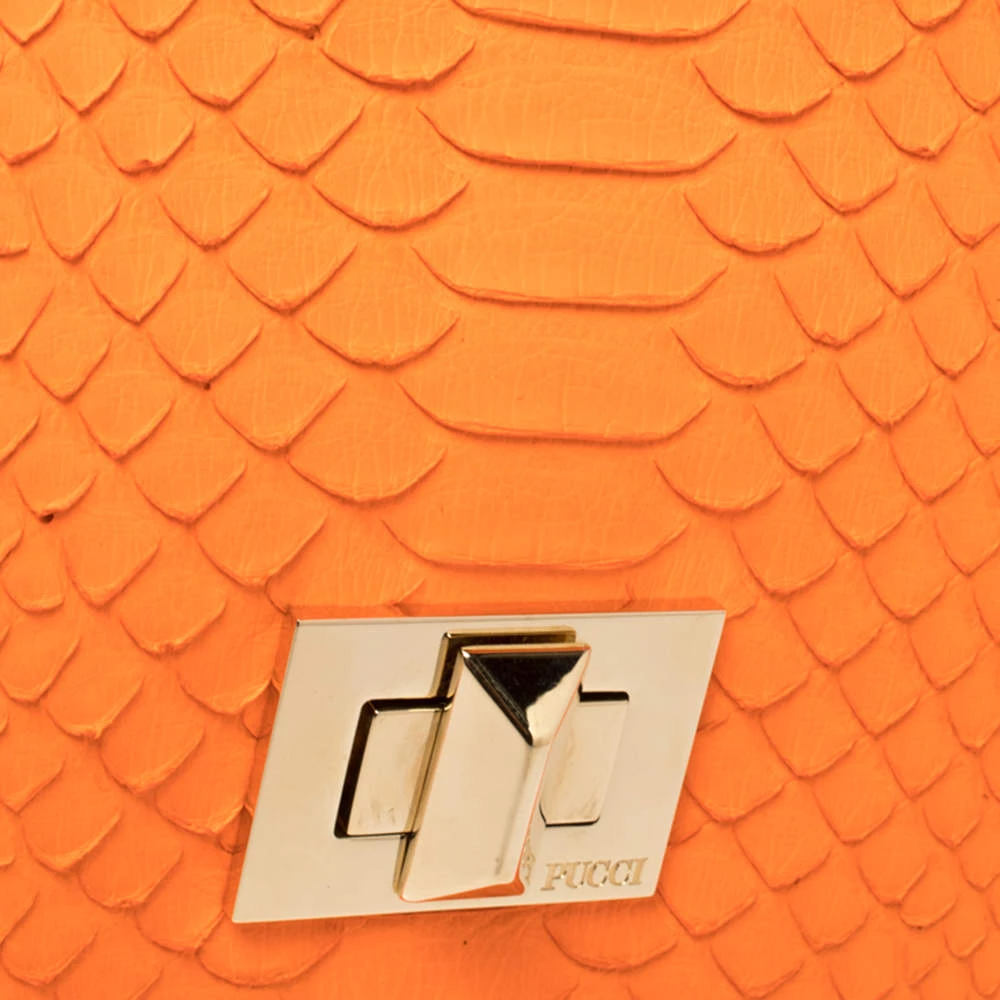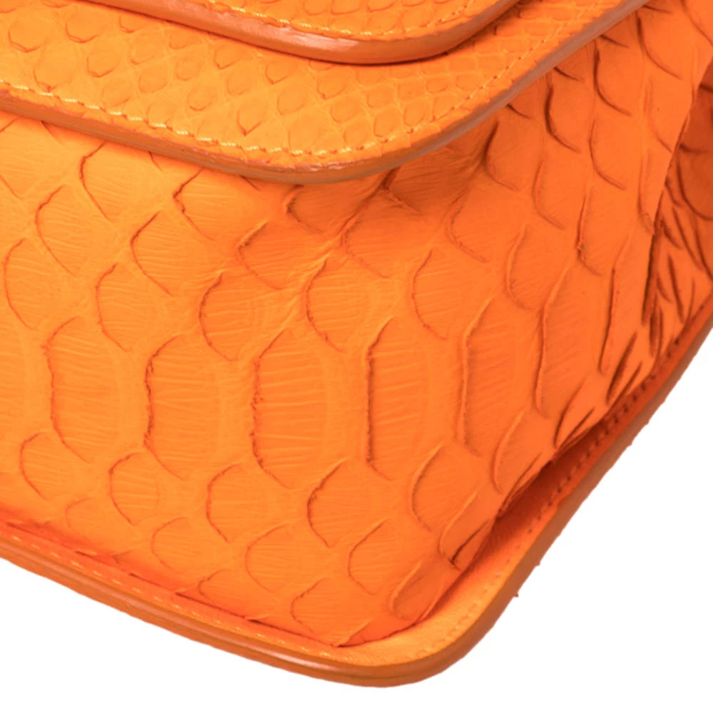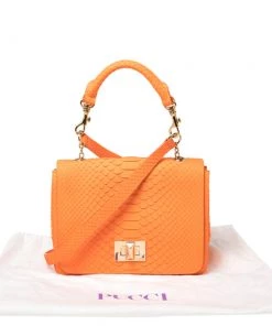 This uber-chic Marquise top handle bag from Emilio Pucci will be a valuable addition to your collection. Crafted from exotic python in an orange hue, the bag features a chain strap with leather shoulder rest and gold-tone studs and ring detailing on the exterior. The turn-lock closure opens to a canvas-lined interior that will fit all your essentials. (NOTE: FOR UAE CUSTOMERS ONLY)