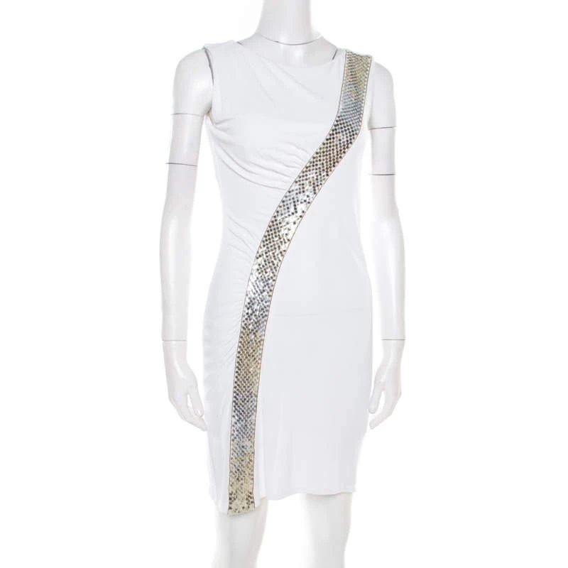 Complete a date-night look with this stunning Emilio Pucci dress. The sleeveless style is designed in white fabric and detailed with stunning sequin embellishment on it. It features a classic rounded neckline. Style with statement-making heels to complete an evening-ready look.
