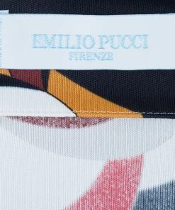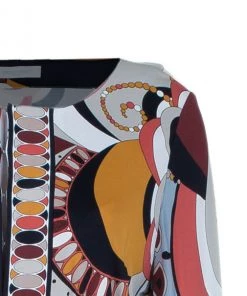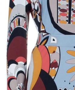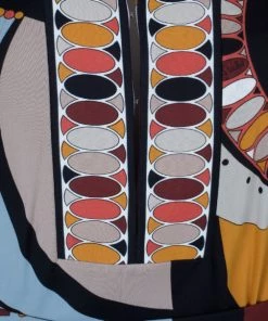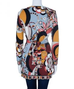Designed with a dramatic yet gorgeous print, this Emilio Pucci tunic top is certainly one of the brand’s most beautiful creations. Showcasing a very artistic print, this viscose top features a slight boat neck, full sleeves and a waist belt at the back for comfortable fitting .Original Retail Price: US $621
