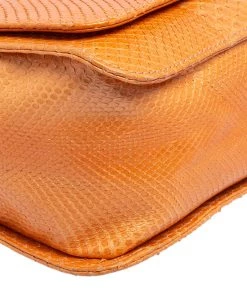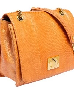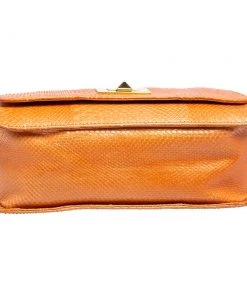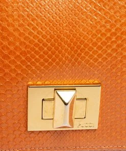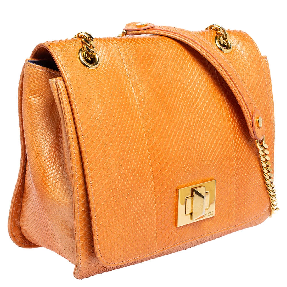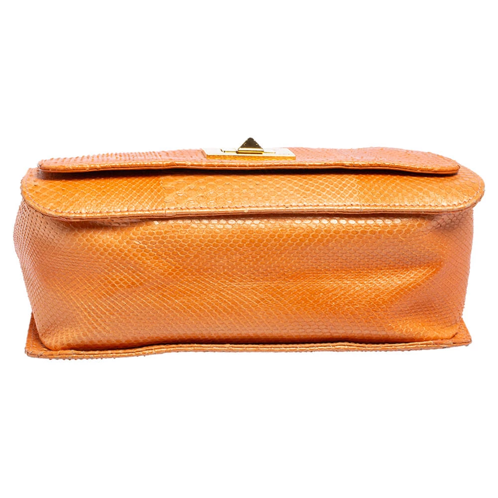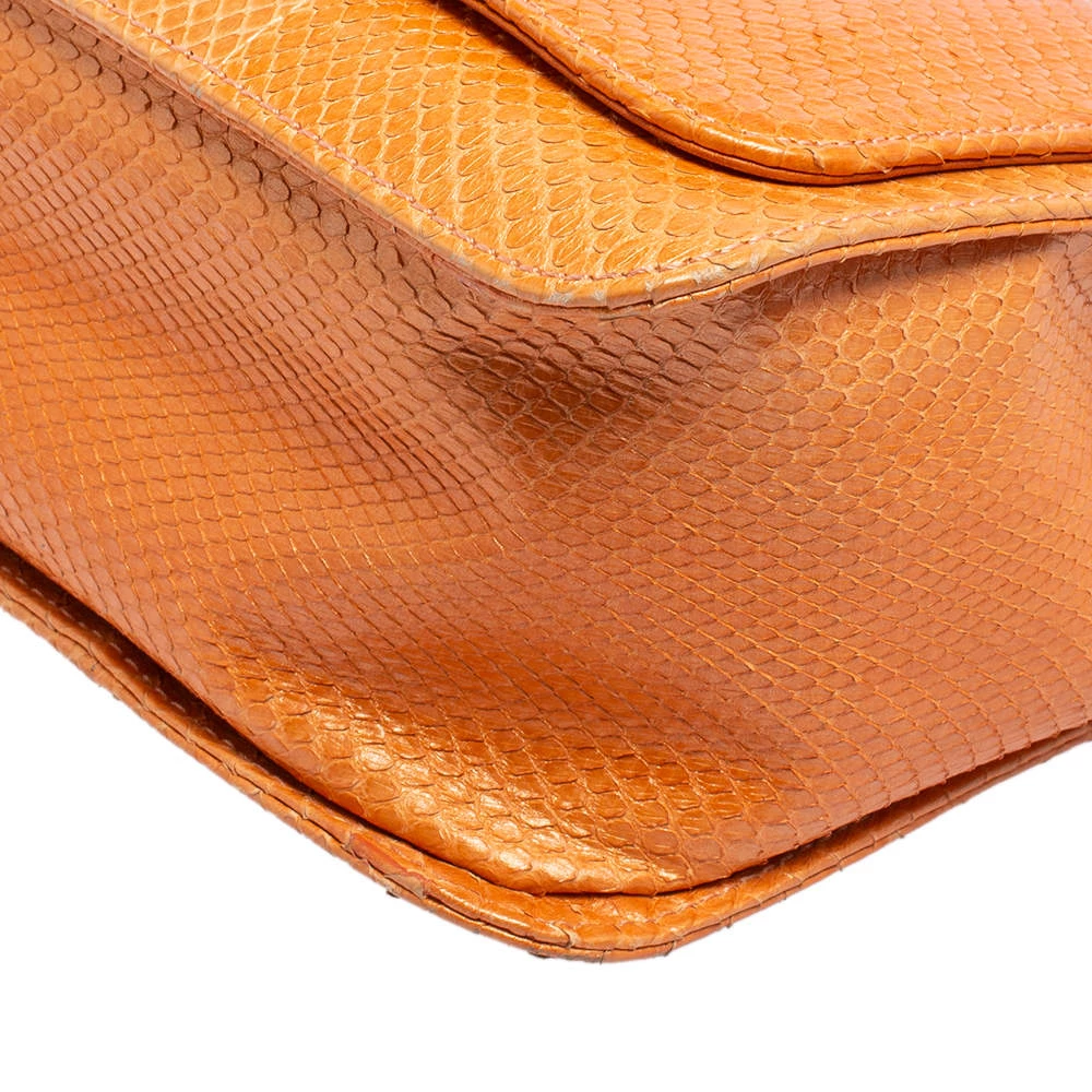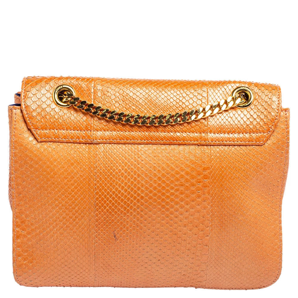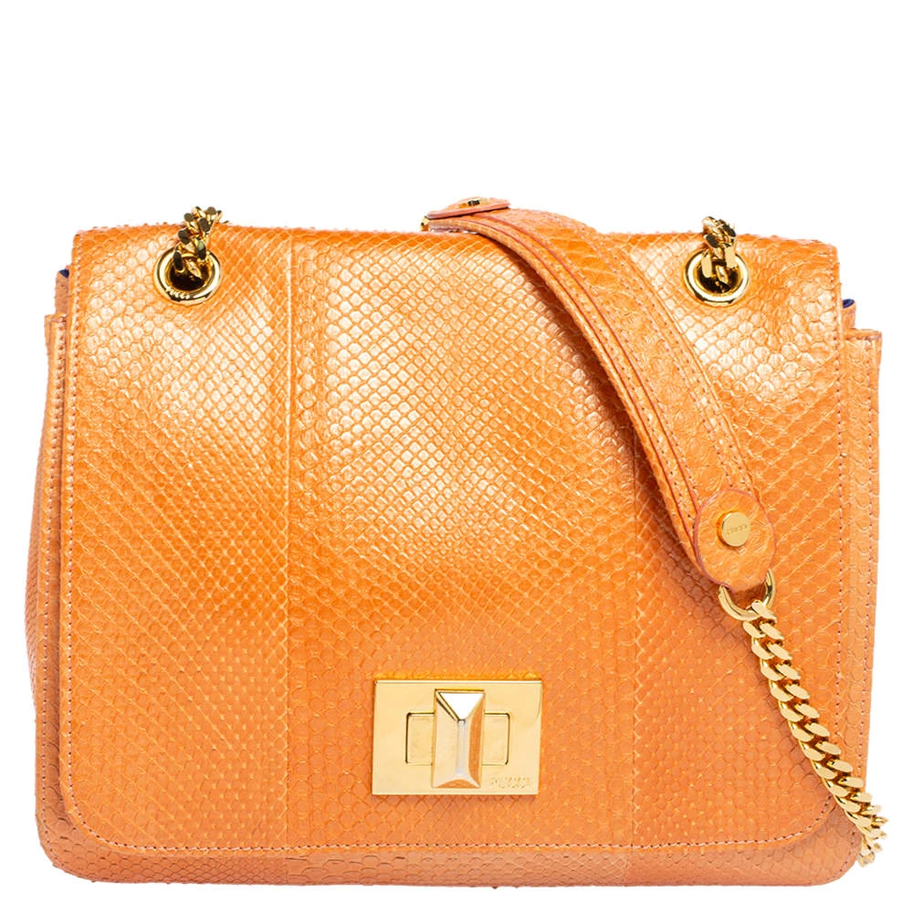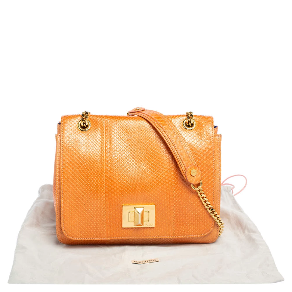 This orange shoulder bag by Emilio Pucci is a symbol of elegance and luxury. Flaunting an exotic snakeskin exterior, this Marquise shoulder bag creates an everlasting impression on your mind. It is completed with gold-toned fittings and a 52 cm shoulder chain. Coordinate this bag with your everyday outfit and look stunning!