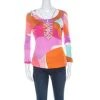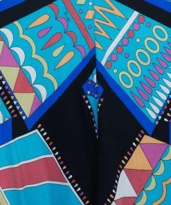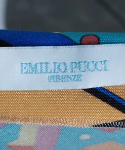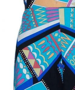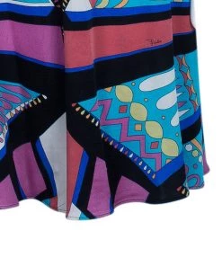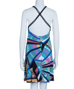 Take a trip to the lovely Hawaiian Islands with this Emilio Pucci dress. Made from silk, this multicolored bright dress is designed with a beautiful patterns. This jersey dress features a fitted bodice with a V neckline, spaghetti straps, a criss-cross back and a knee-length hem. It comes with a hidden zip closure at the back.