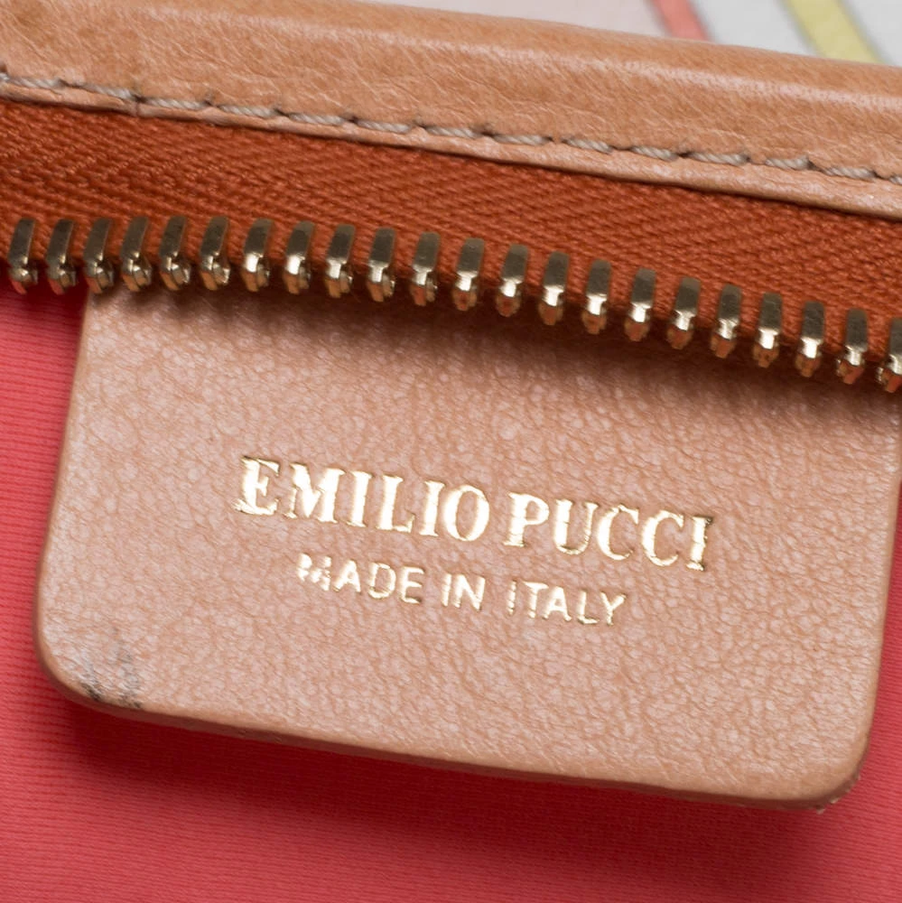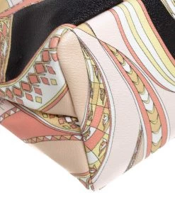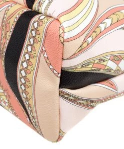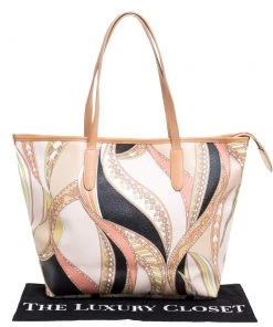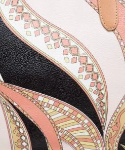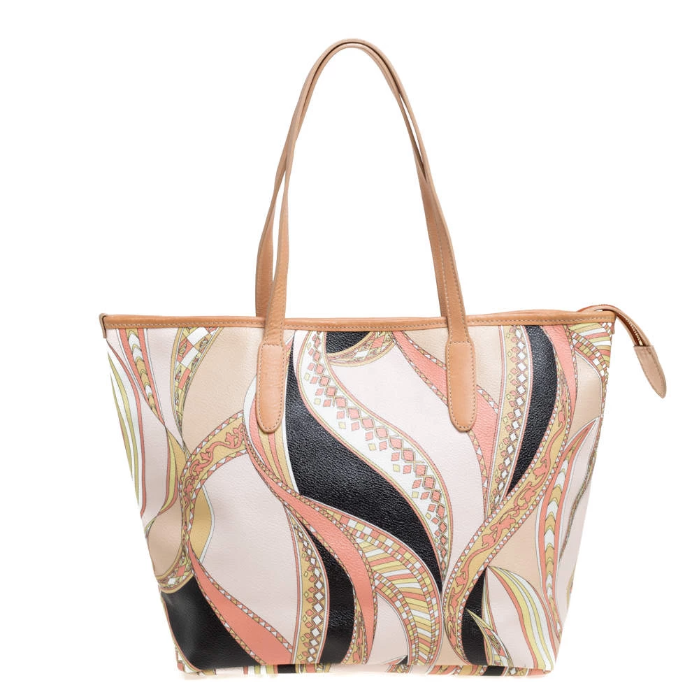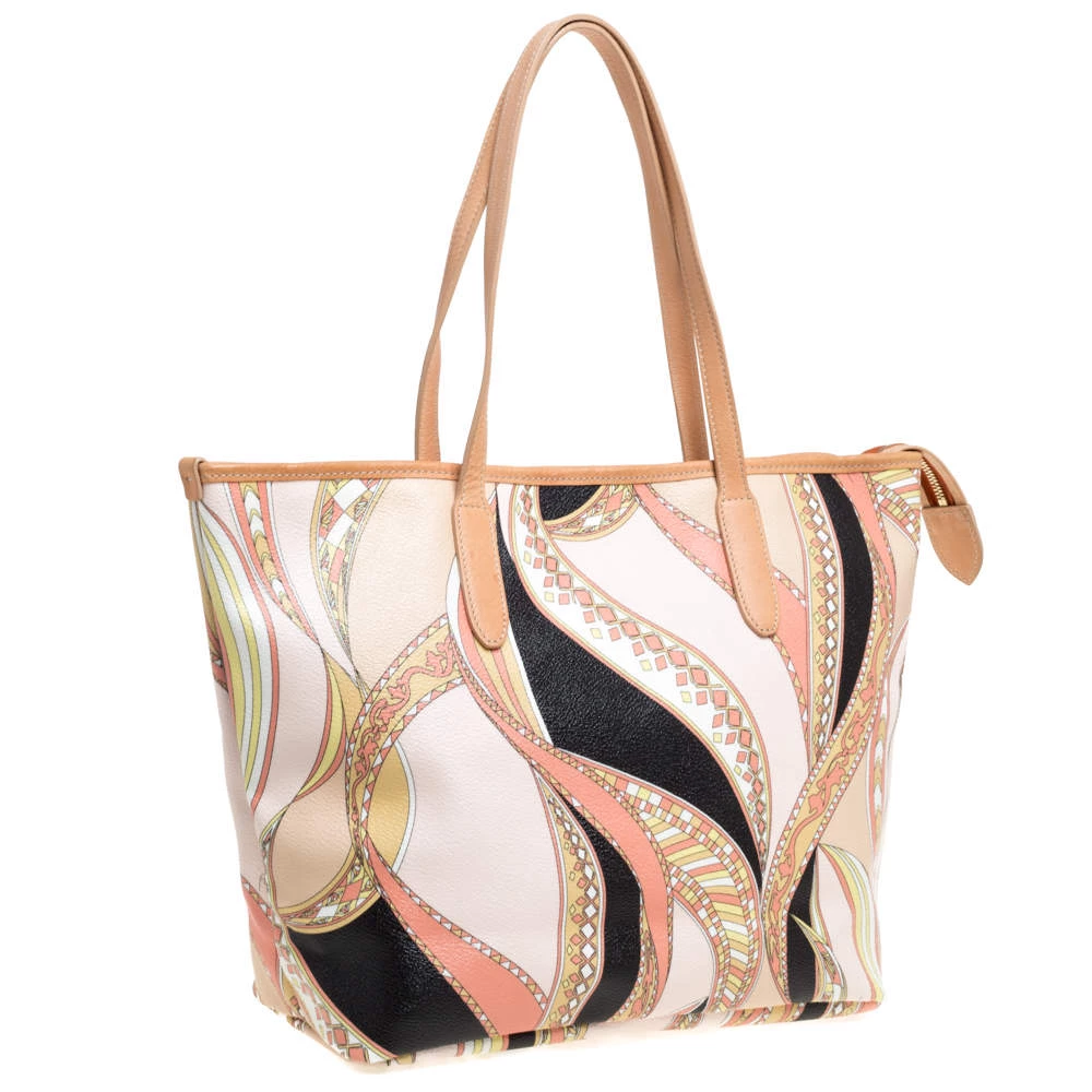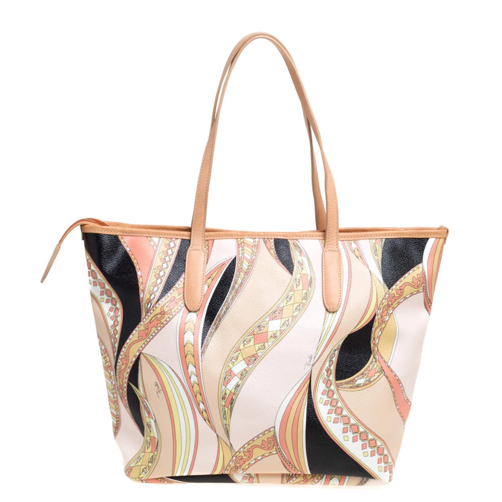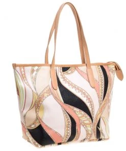 High on style, carry this tote from Emilio Pucci without compromising on style. Feel confident and beautiful every time you walk out the door with this beautifully printed canvas and leather tote. Lined with fabric on the inside, it keeps all your essentials intact. Fancy and classy, this pretty creation is complete with dual top handles.