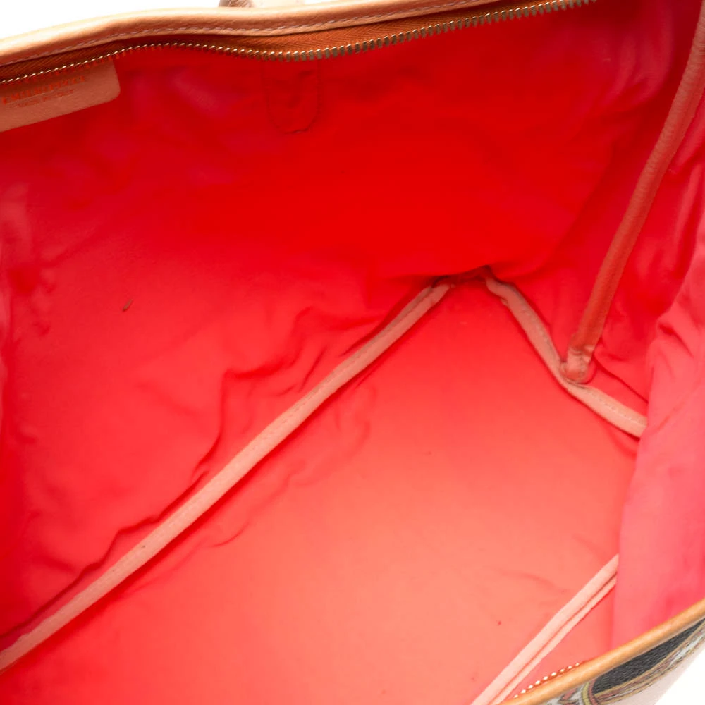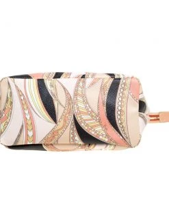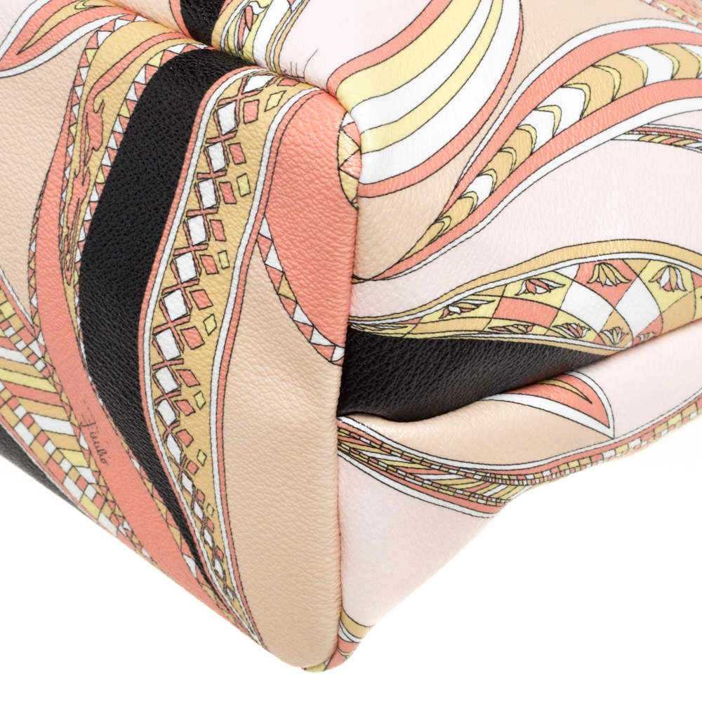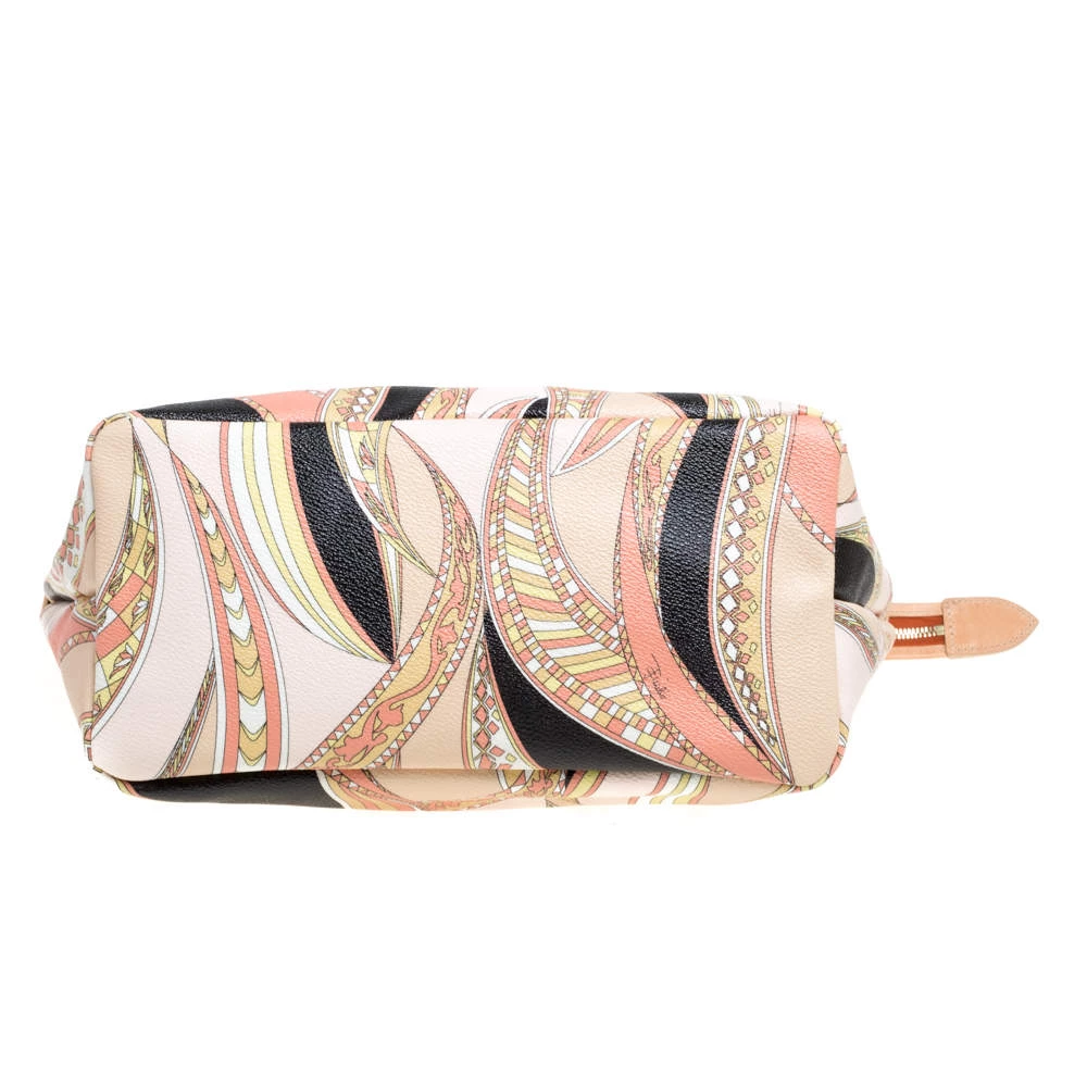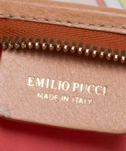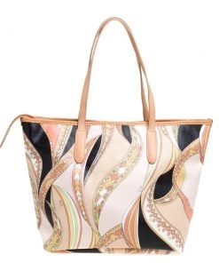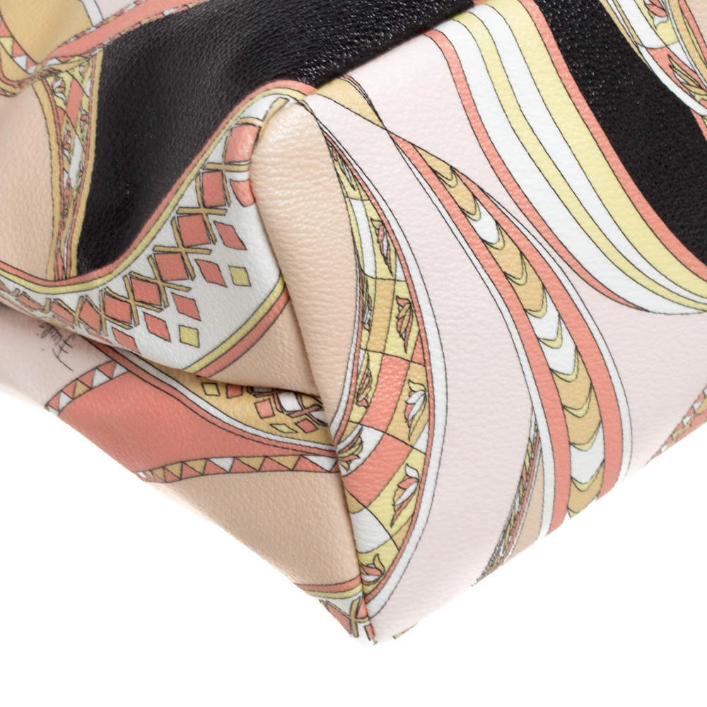 High on style, carry this tote from Emilio Pucci without compromising on style. Feel confident and beautiful every time you walk out the door with this beautifully printed canvas and leather tote. Lined with fabric on the inside, it keeps all your essentials intact. Fancy and classy, this pretty creation is complete with dual top handles.