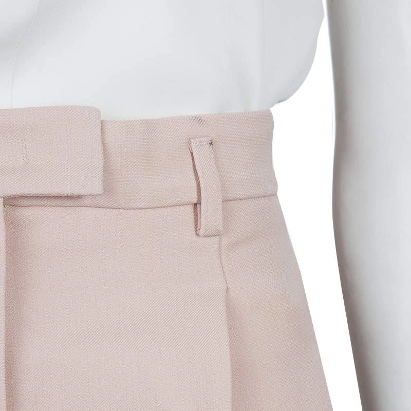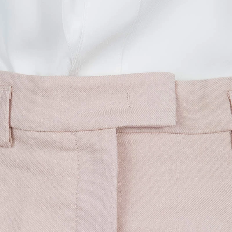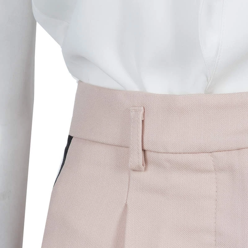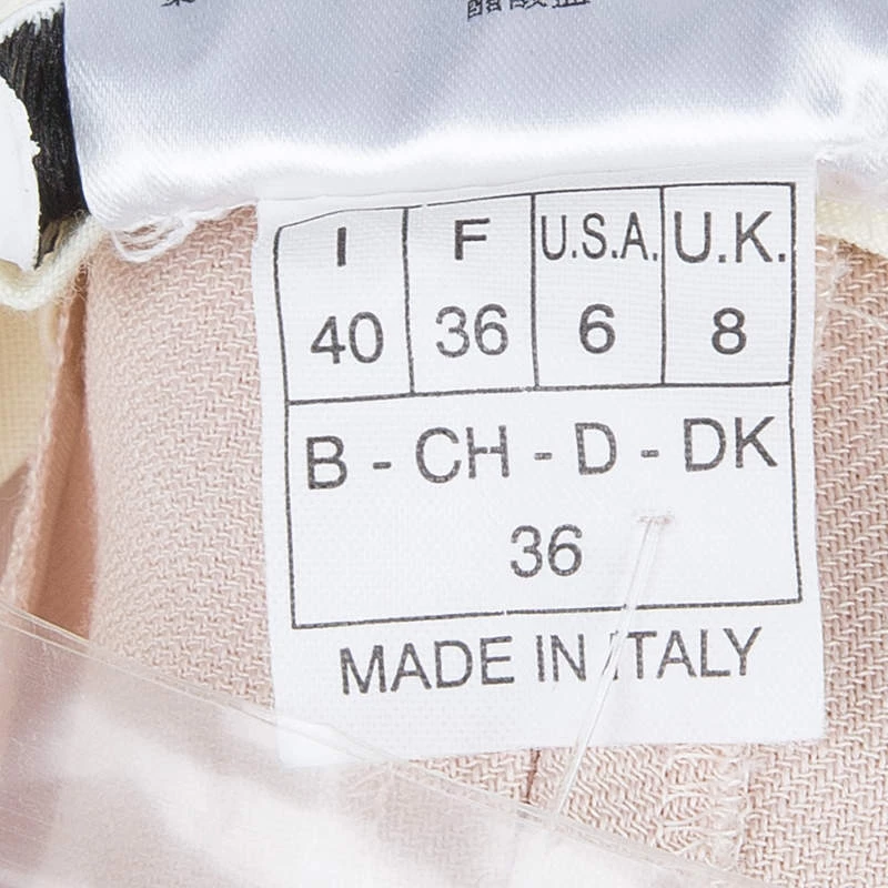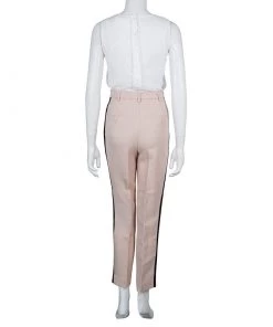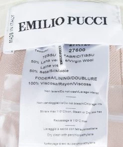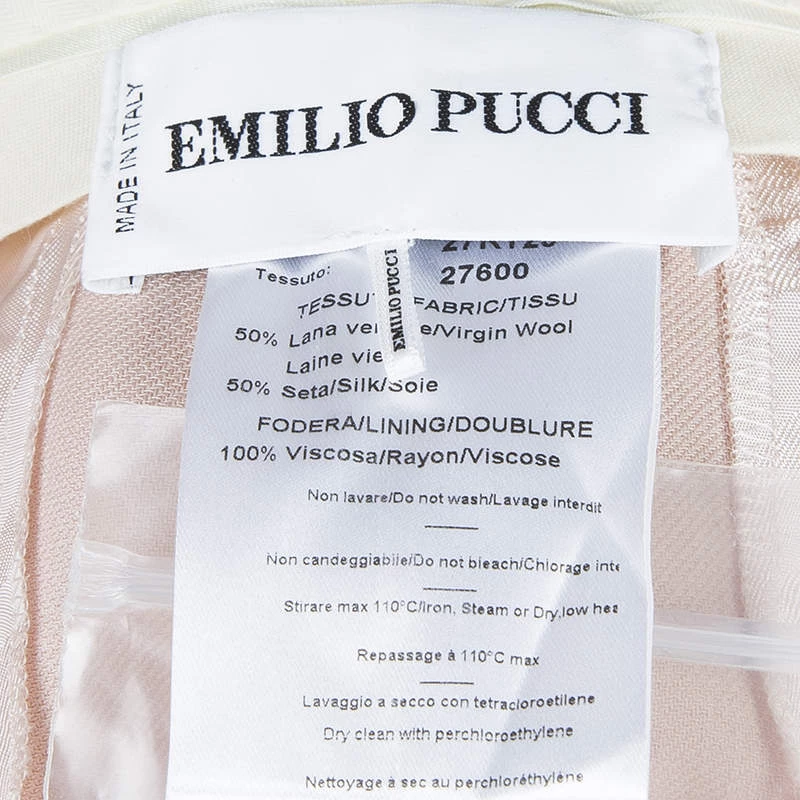 Match this astounding trouser tailored by Emilio Pucci with a white top to counter an impressive look all together. Crafted with wool, silk and rayon blend, it features hook up closure with a zipper. This trouser is accentuated with side panels and two back pockets.