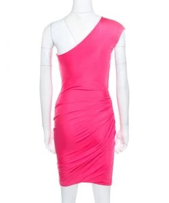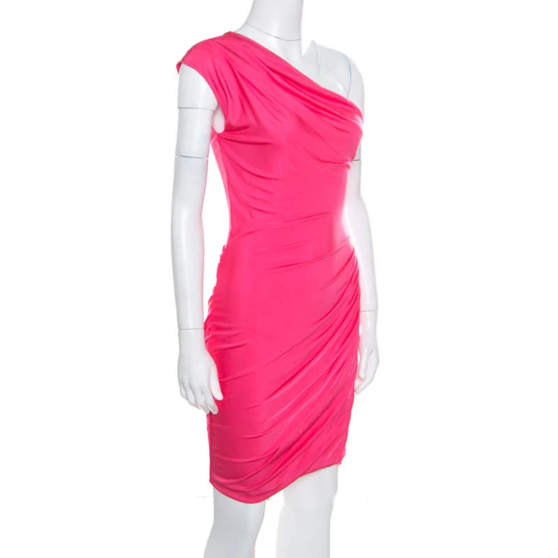 This one shoulder dress from Emilio Pucci promises to make you look nothing less than a diva! The pink creation is made of 100% viscose and features a flattering feminine silhouette. It flaunts a draped layout and can be paired well with platform sandals and an embellished clutch for a special dinner date.