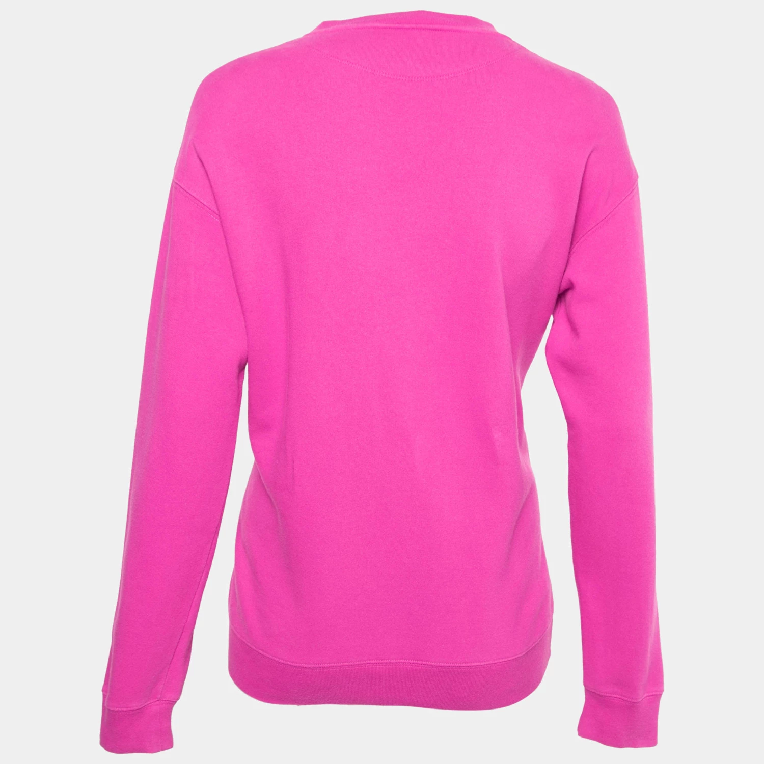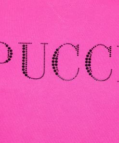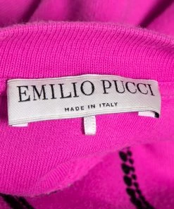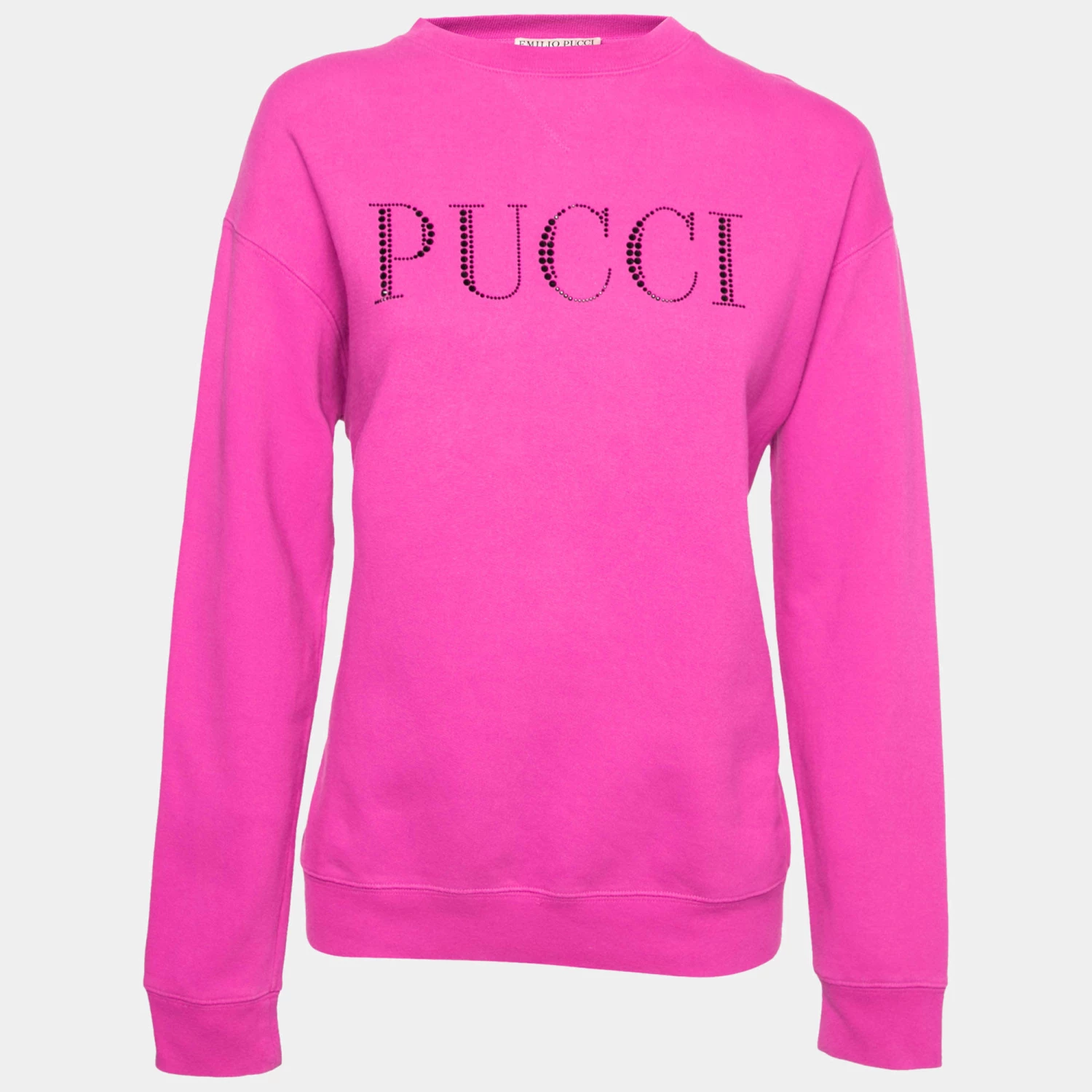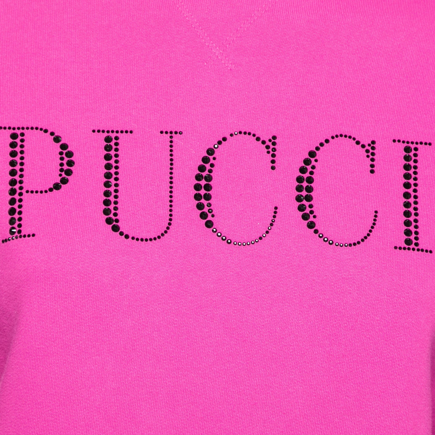 Emilio Pucci’s cute sweatshirt offers you a package full of elegance, comfort, and relaxation. With a sequined logo embellishing the front, this cotton sweatshirt flaunts a pink hue, long sleeves, and a crew neck. Match this Emilio Pucci creation with jeans and high-ankle boots to obtain a stylish winter look.