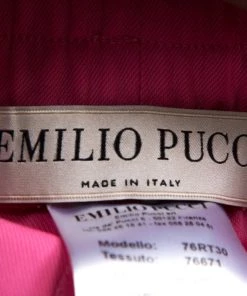 Get a comfortable and cool look in these sweatpants by Emilio Pucci. Made from a blend of fabrics in bright pink, these pants feature an elasticised waistline and snap buttons on the contrasting white side seams.