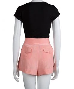 Welcome the spring with this adorable pair of shorts from none other than Emilio Pucci. Having an endearing light pink color, the shorts have been crafted from the finest quality silk. They extend up to the thighs and have an elaborate flare, giving them a skirt-like appearance.