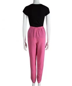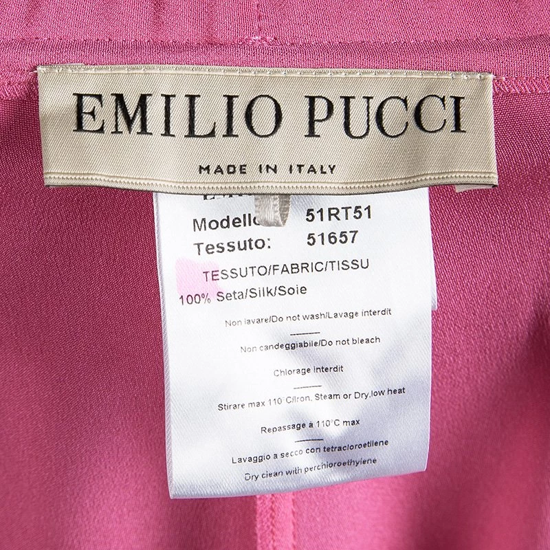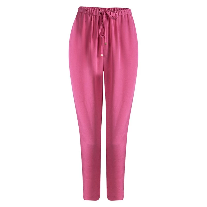 Legendary brand Emilio Pucci is loved for psychedelic colours and prints in its edits of maximalist yet polished designs. These trousers from the house if cut from a vibrant pink silk designed for a relaxed fit. It comes with an elasticated waistband secured with a tie detail. We think these trousers are a great win this summers. Pair with a cool fitted top and go easy on the footwear for a summer-ready look!